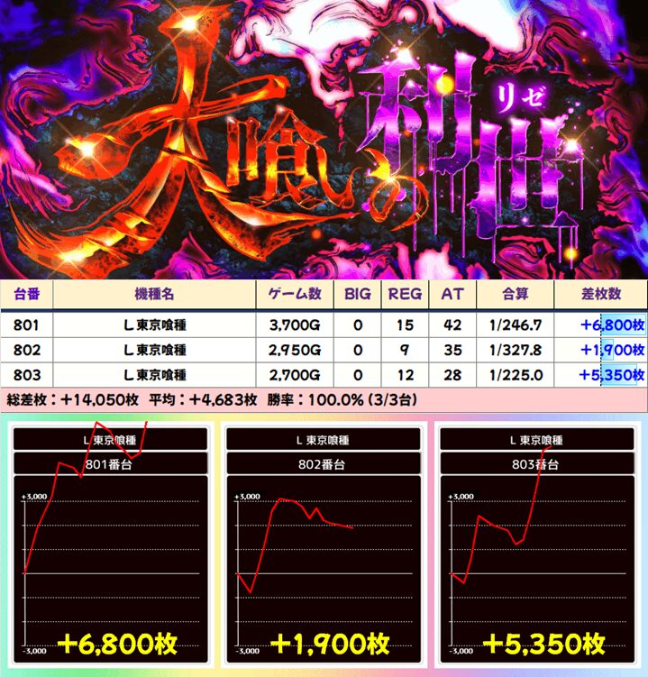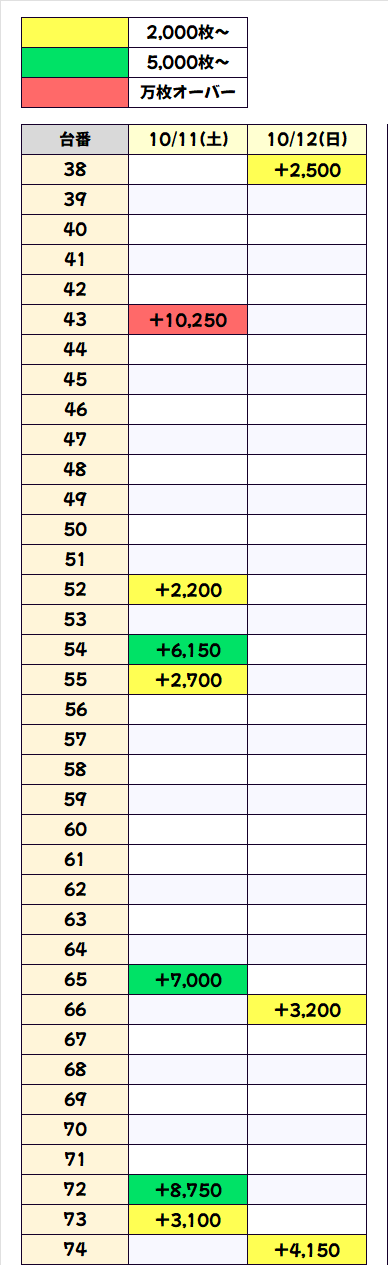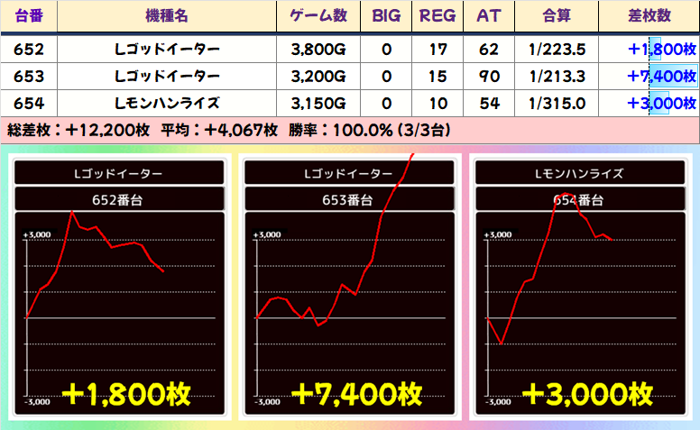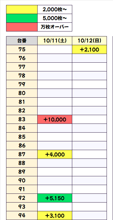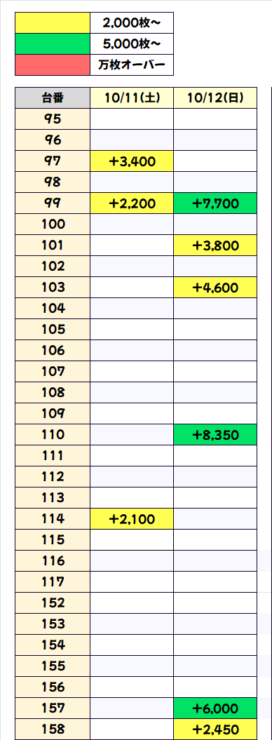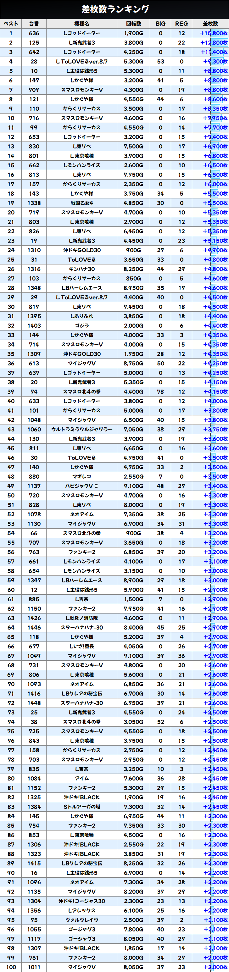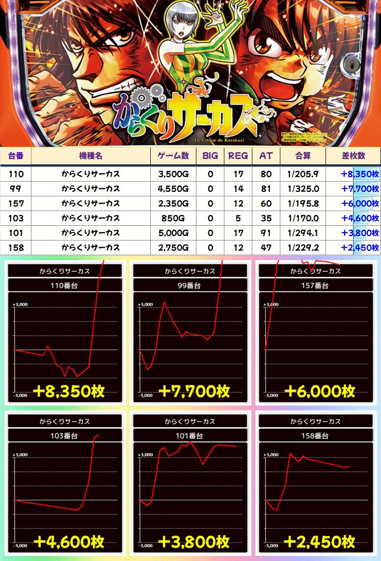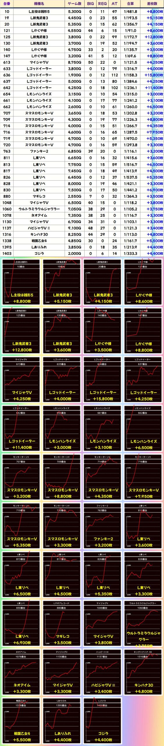 8000枚・7000枚の爆裂台アリ!合計で6台もの優秀台を確認できました。