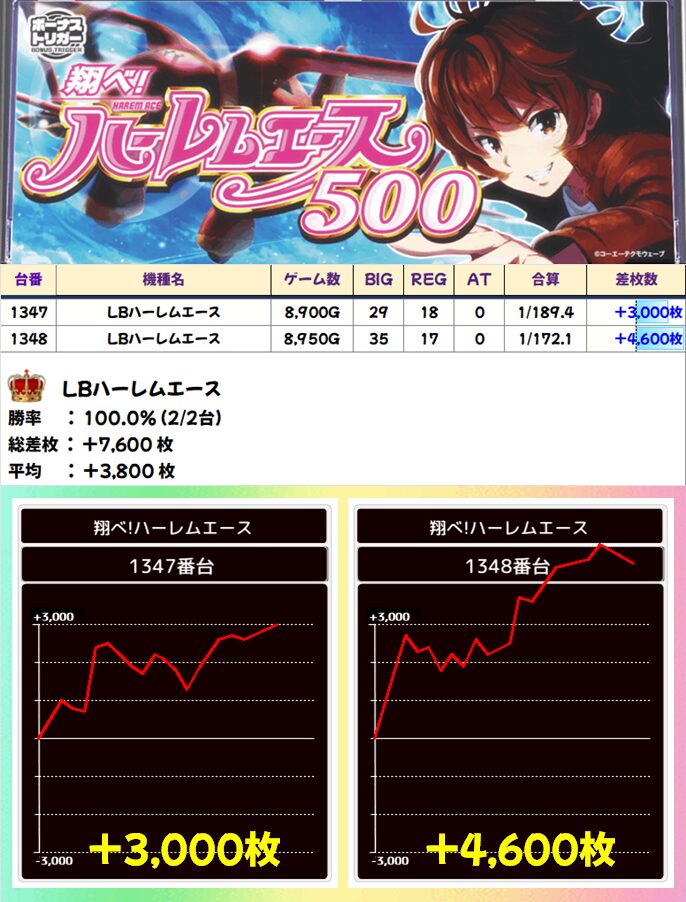 LBハーレムエース (2/2台+) ➡平均 +3,800枚