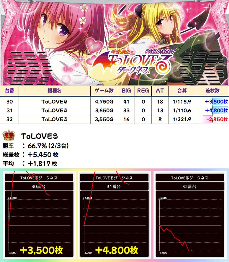 ToLOVEる (2/3台+) ➡平均 +1,817枚