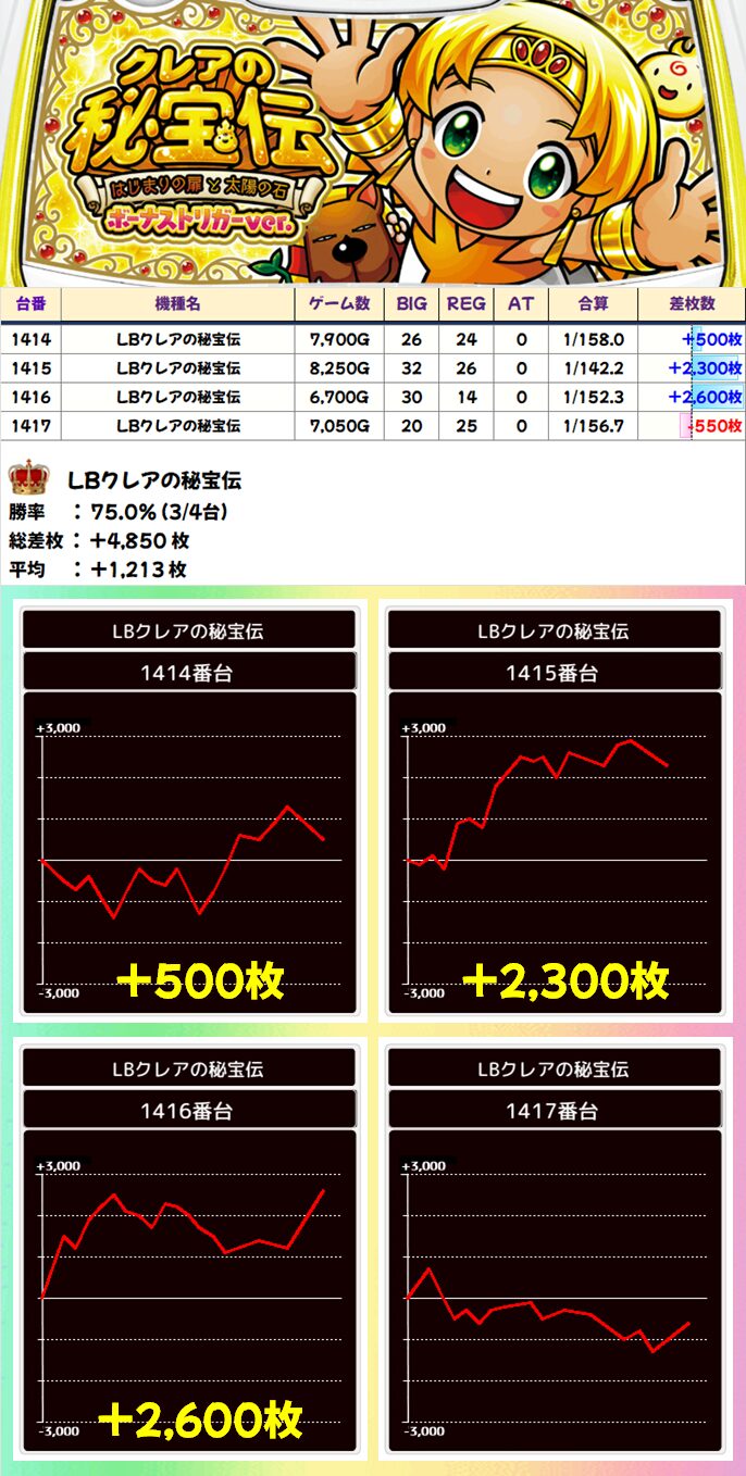 LBクレアの秘宝伝 (3/4台+) ➡平均 +1,213枚