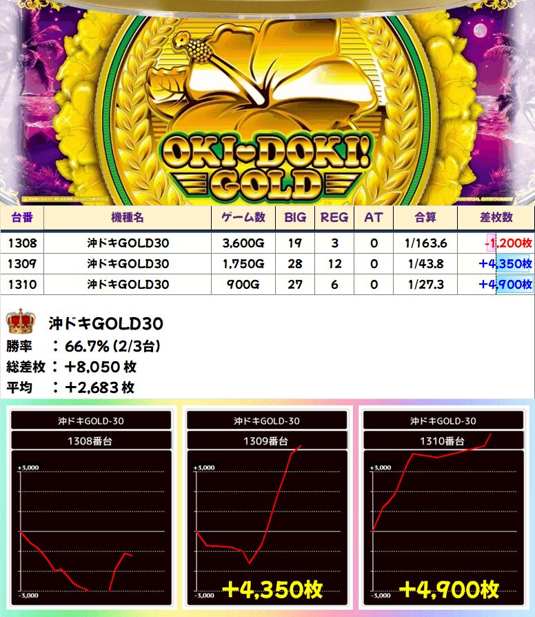沖ドキGOLD30 (2/3台+) ➡平均 +2,683枚