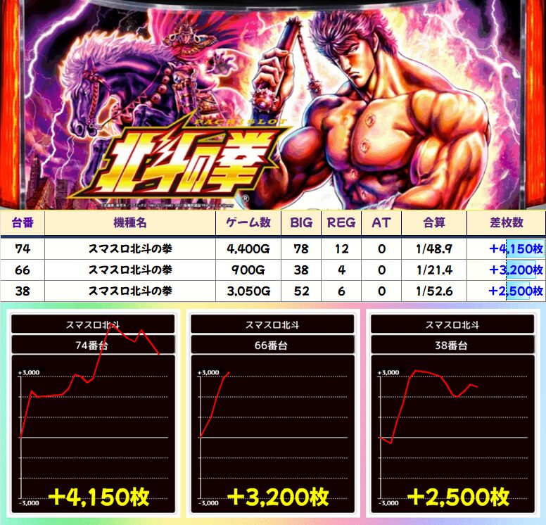 スマスロ北斗の拳は4000枚を筆頭に優秀台が3台アリ!
