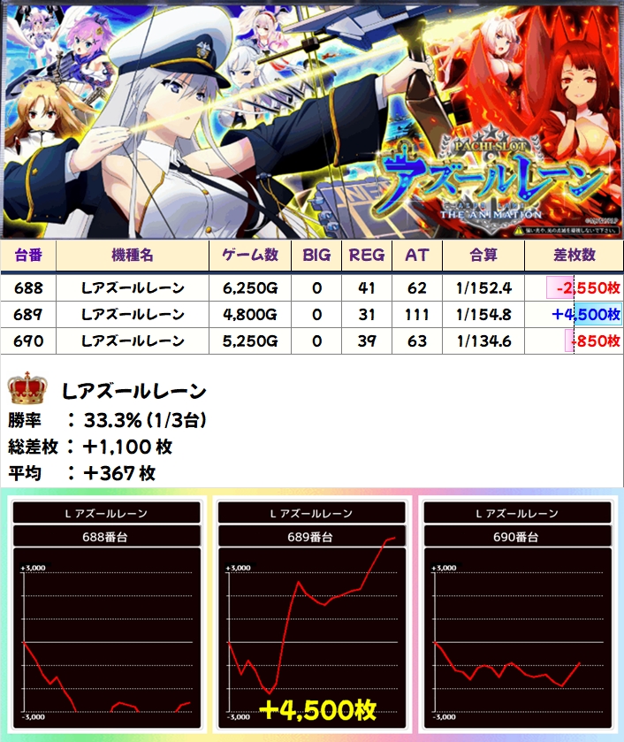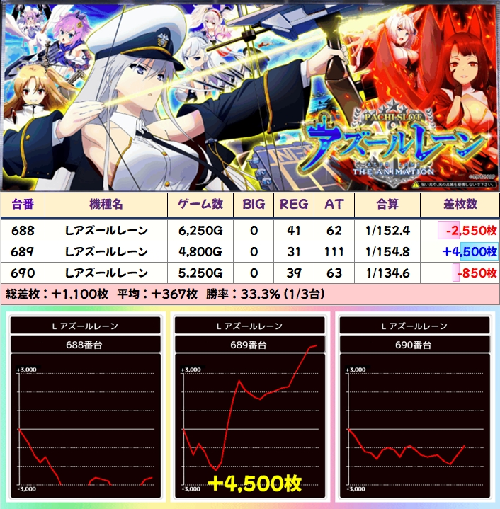 【全台系!?】Lアズールレーン(1/3台+)→平均+367枚