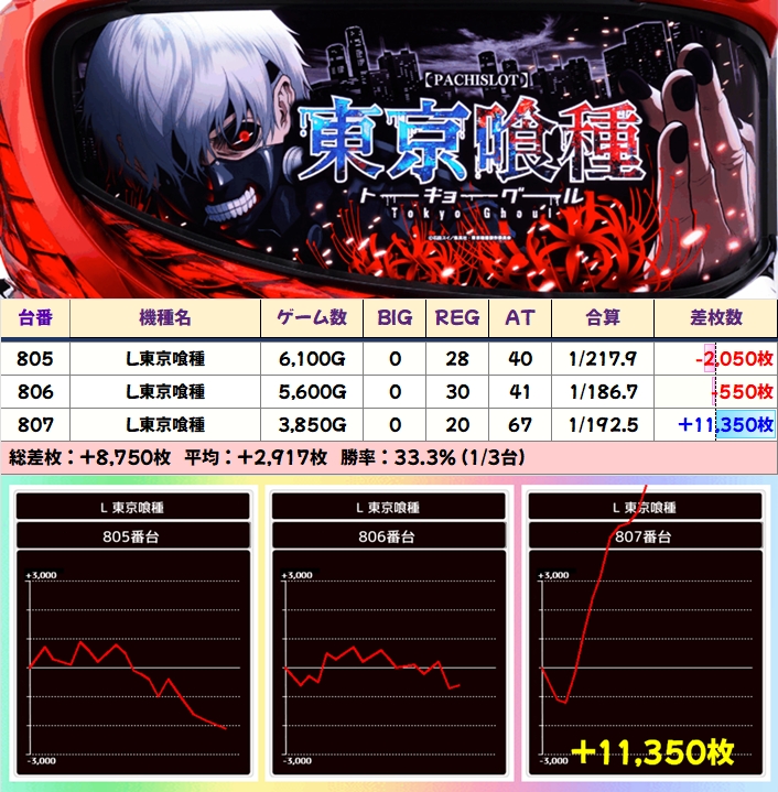 今回は新ポスターに加えて先カブ発動と激アツな要素が重なっていたということで、総差枚+35万枚オーバー、平均+484枚という素晴らしい結果に!