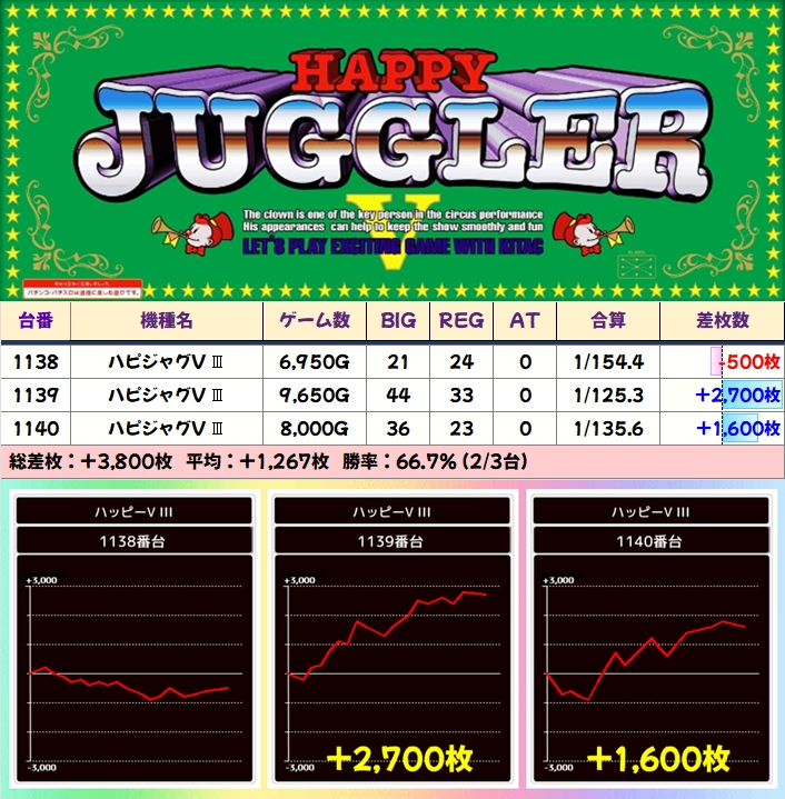 今回のような強い要素が重なった際は、ジャグラーの全台系を意識するのが良いのかもしれませんね。