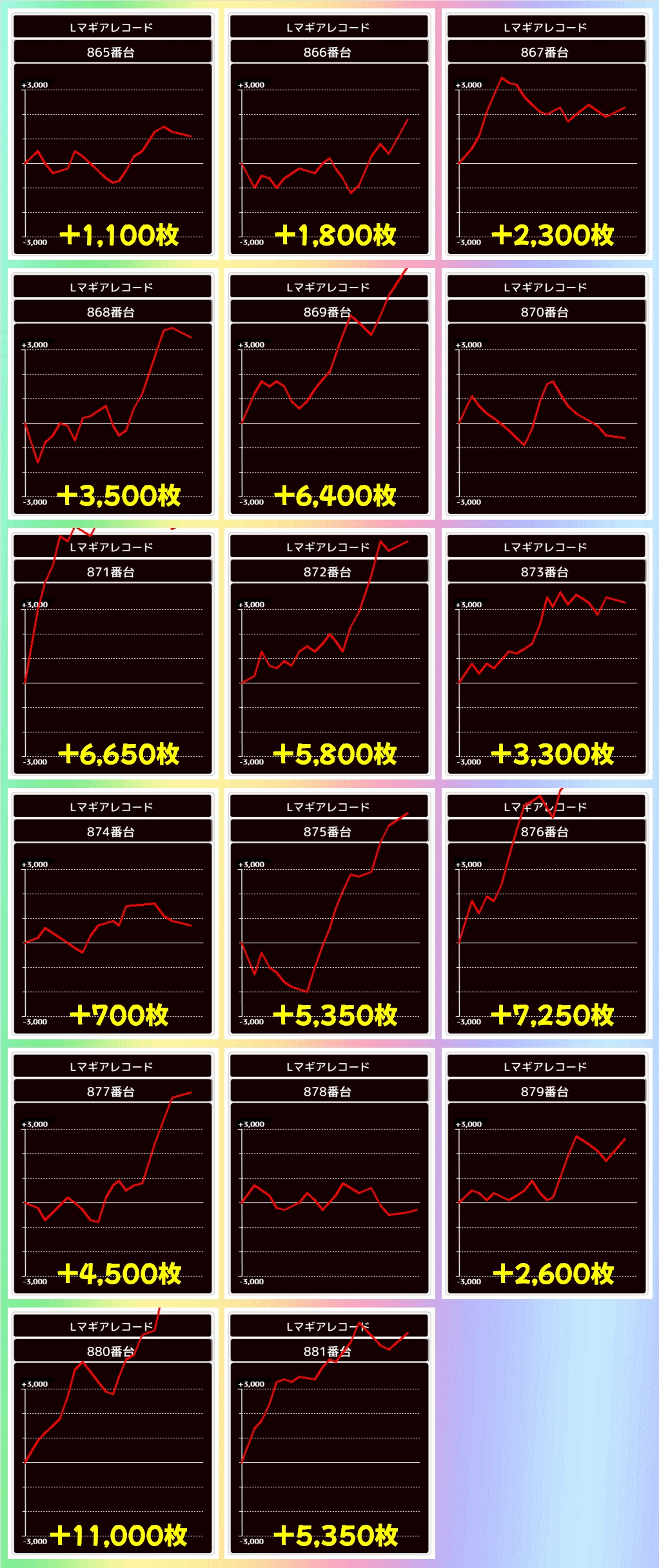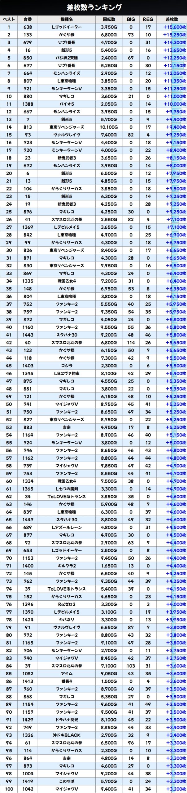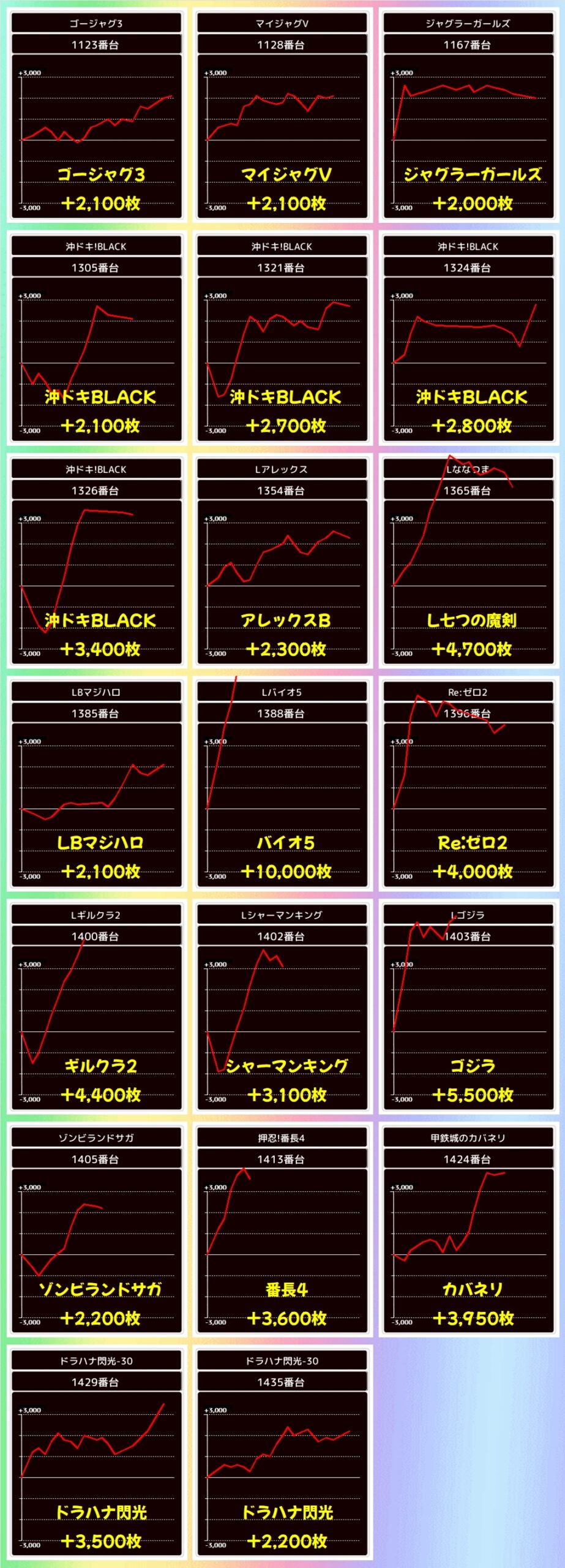 今回は各機種に並び仕掛けを確認できましたが、それらも含めて各機種の優秀台(+2000枚以上)をピックアップしていきます。