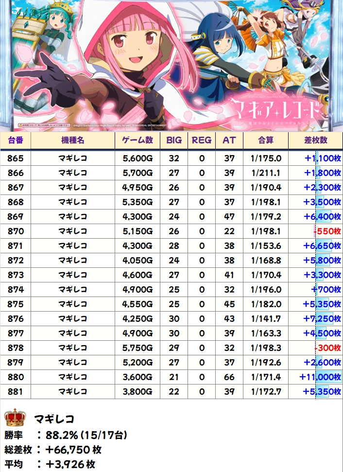 【全台系濃厚】マギレコ(15/17台+)→平均+3,926枚