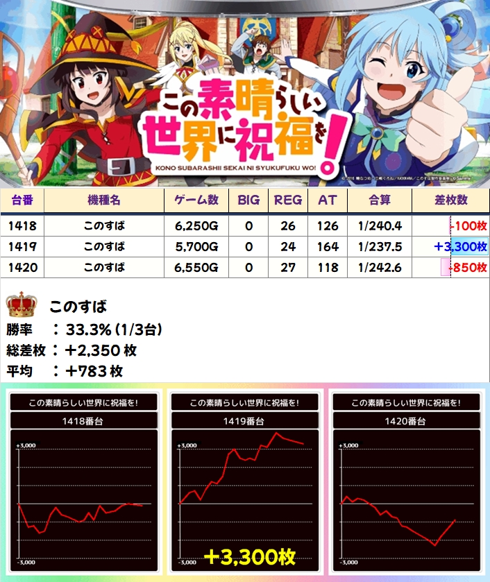 【全台系!?】このすば(1/3台+)→平均+783枚