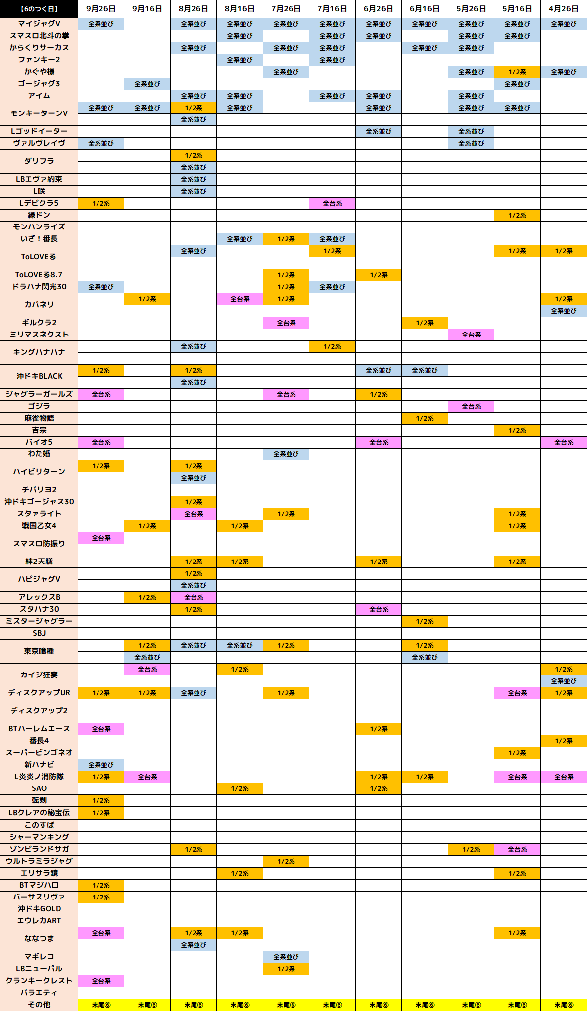 今回の6の日は下記の4機種に1/2系濃厚の仕掛けがあった模様です。