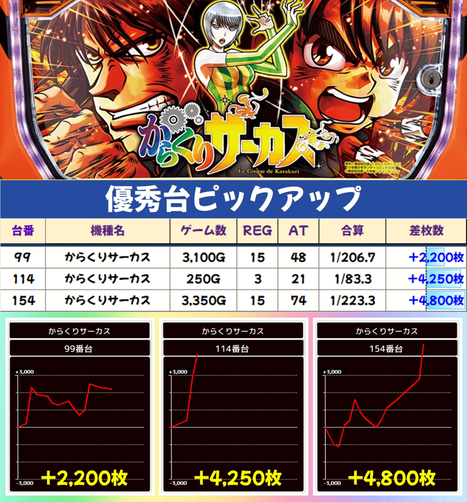 からくりサーカスからは複数の+4000枚オーバーの出玉あり!