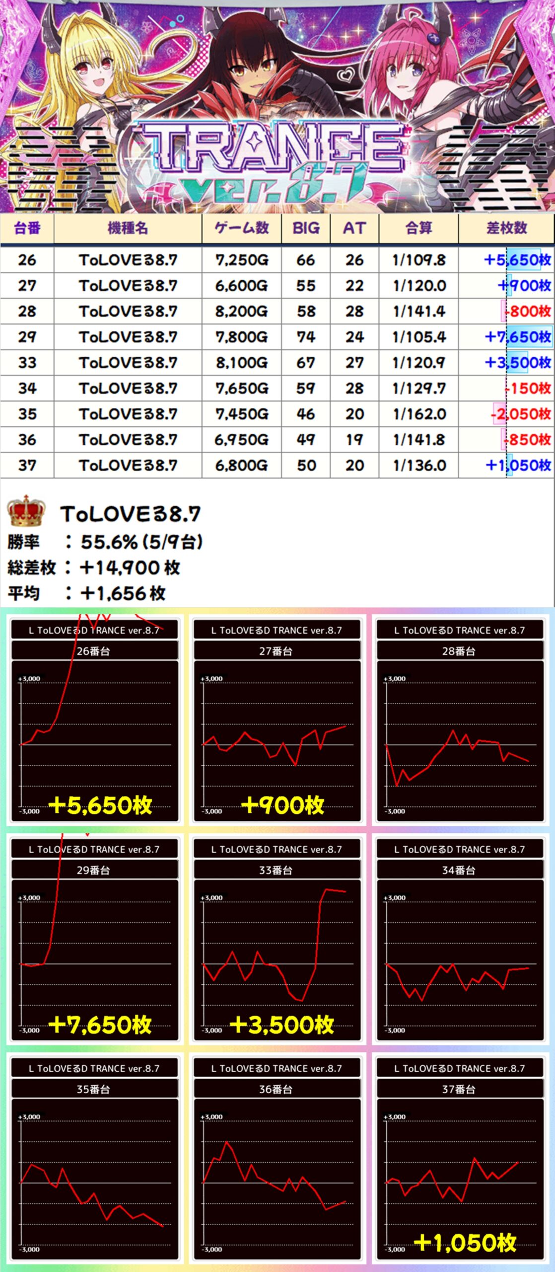 【全台系濃厚】ToLOVEる8.7(5/9台+)→平均+1,656枚