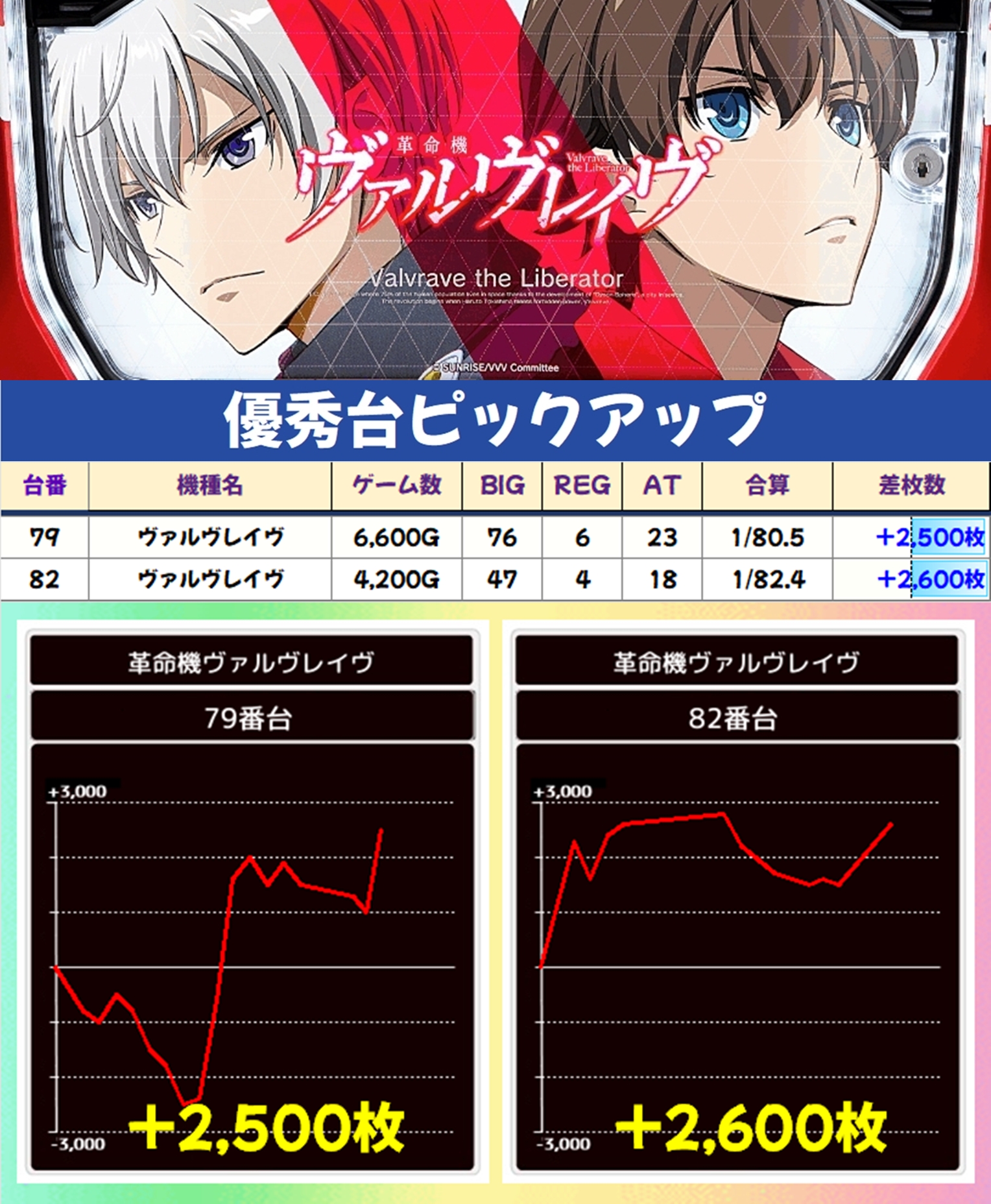 ヴァルヴレイヴは+2600枚、+2500枚と2台の+2000枚オーバーを確認!