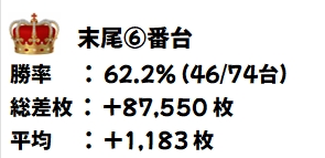 末尾⑥番台(46/74台+)→Ave+1,183枚
