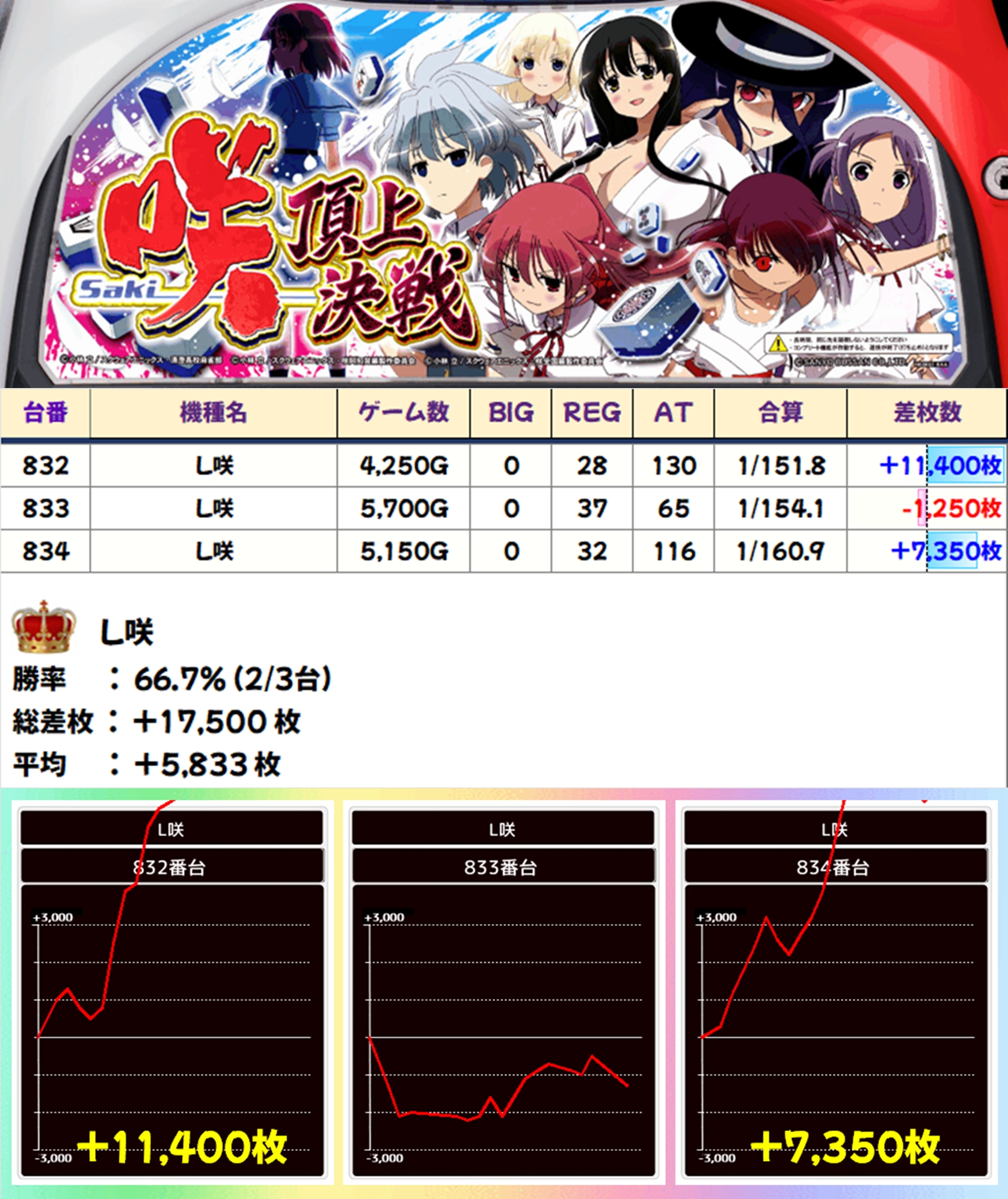 L咲にも不発台はあったものの、3台平均で+5833枚は驚異的と言って良い結果でしょう!