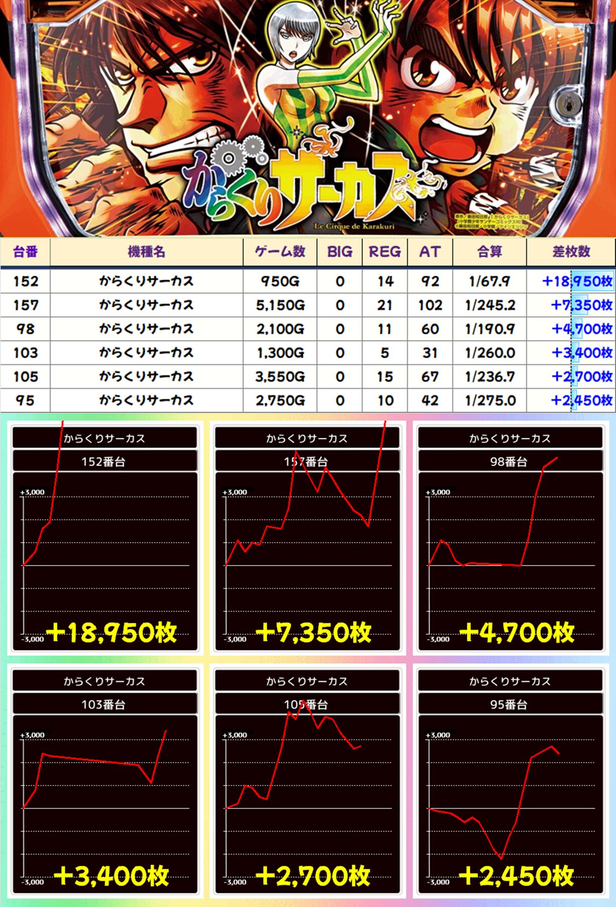 からくりサーカスからはコンプ濃厚台アリ!その他優秀台が合計6台アリ!