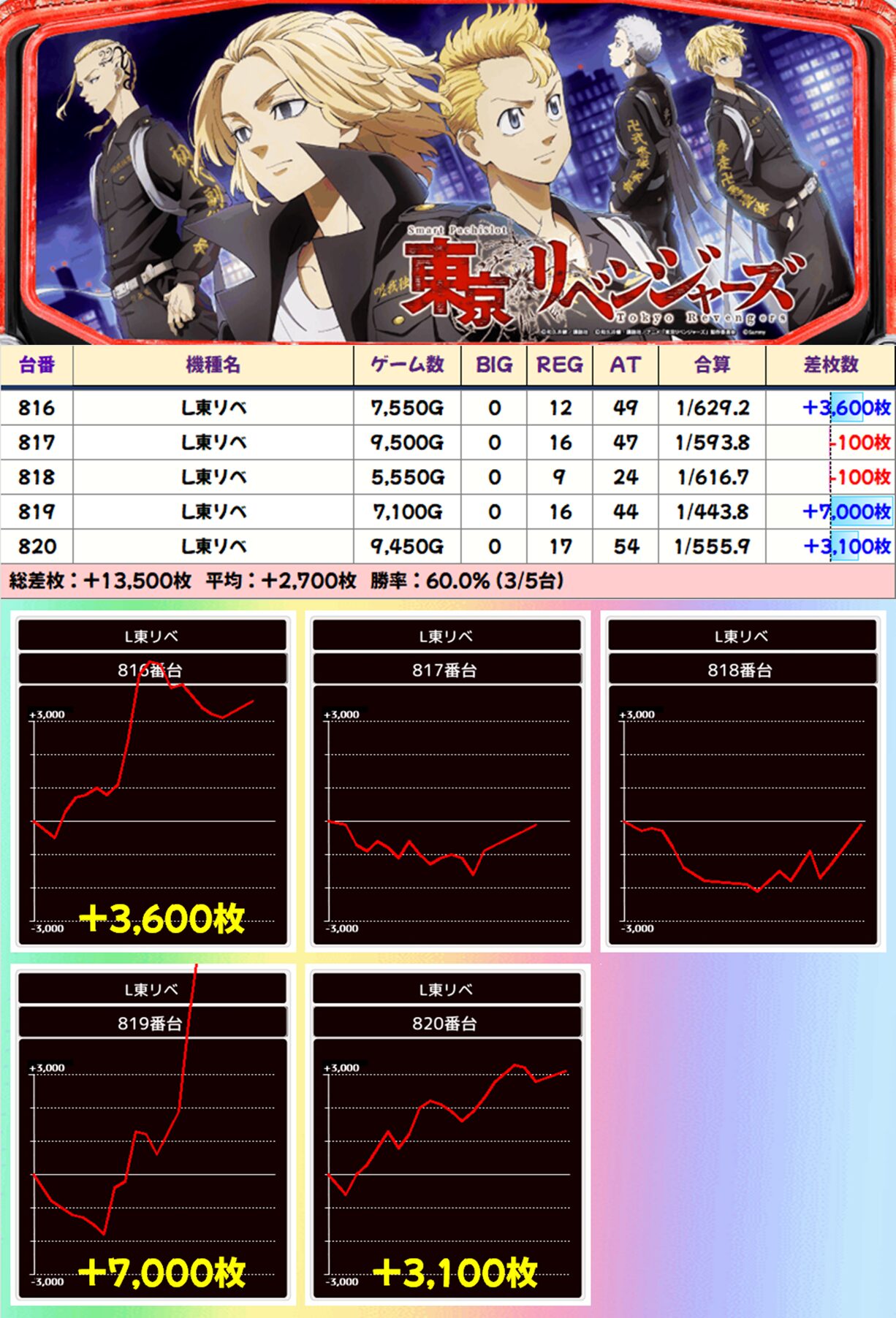 スマスロ北斗からは5000枚超が2台あり、合計5台の優秀台を確認!