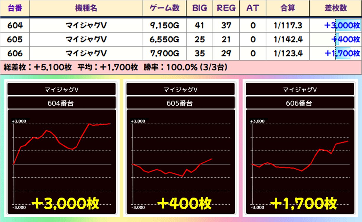 【3台並び】マイジャグラーV(604~606)➡平均+1,700枚
