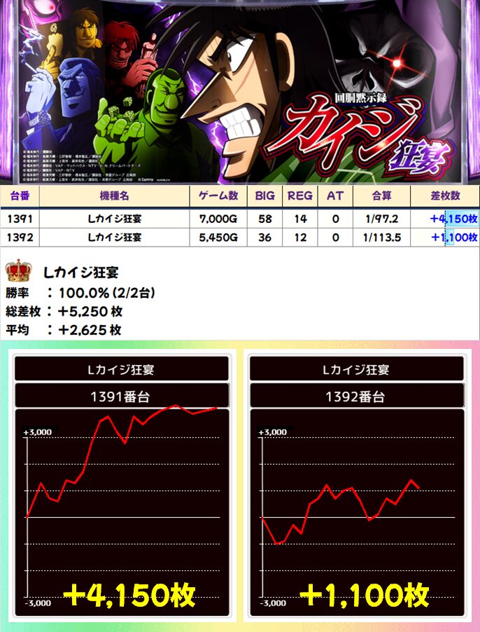 Lカイジ狂宴 (2/2台+) ➡平均 +2,625枚