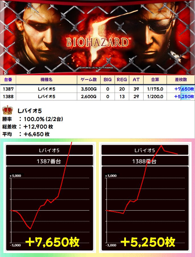 Lバイオ5 (2/2台+) ➡平均 +6,450枚