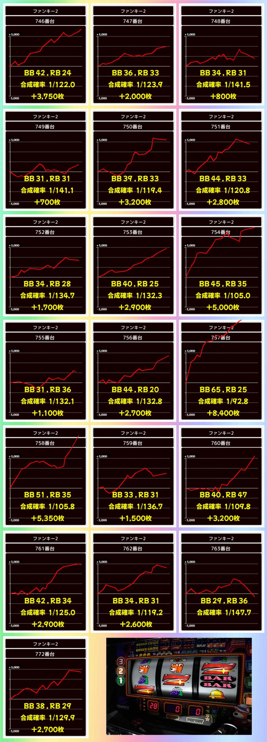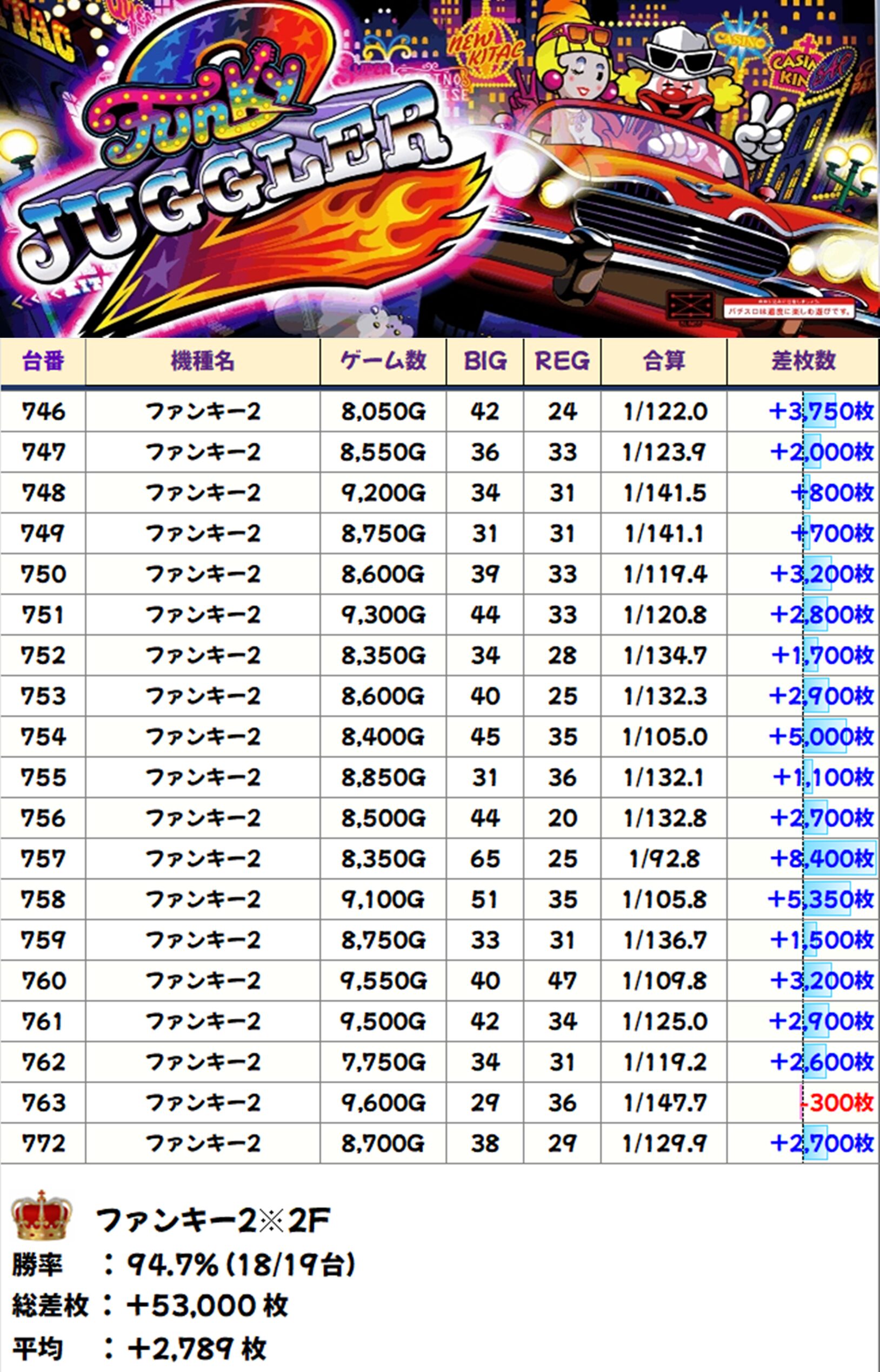 【全台系濃厚】ファンキー2※2F(18/19台+)→平均+2,789枚