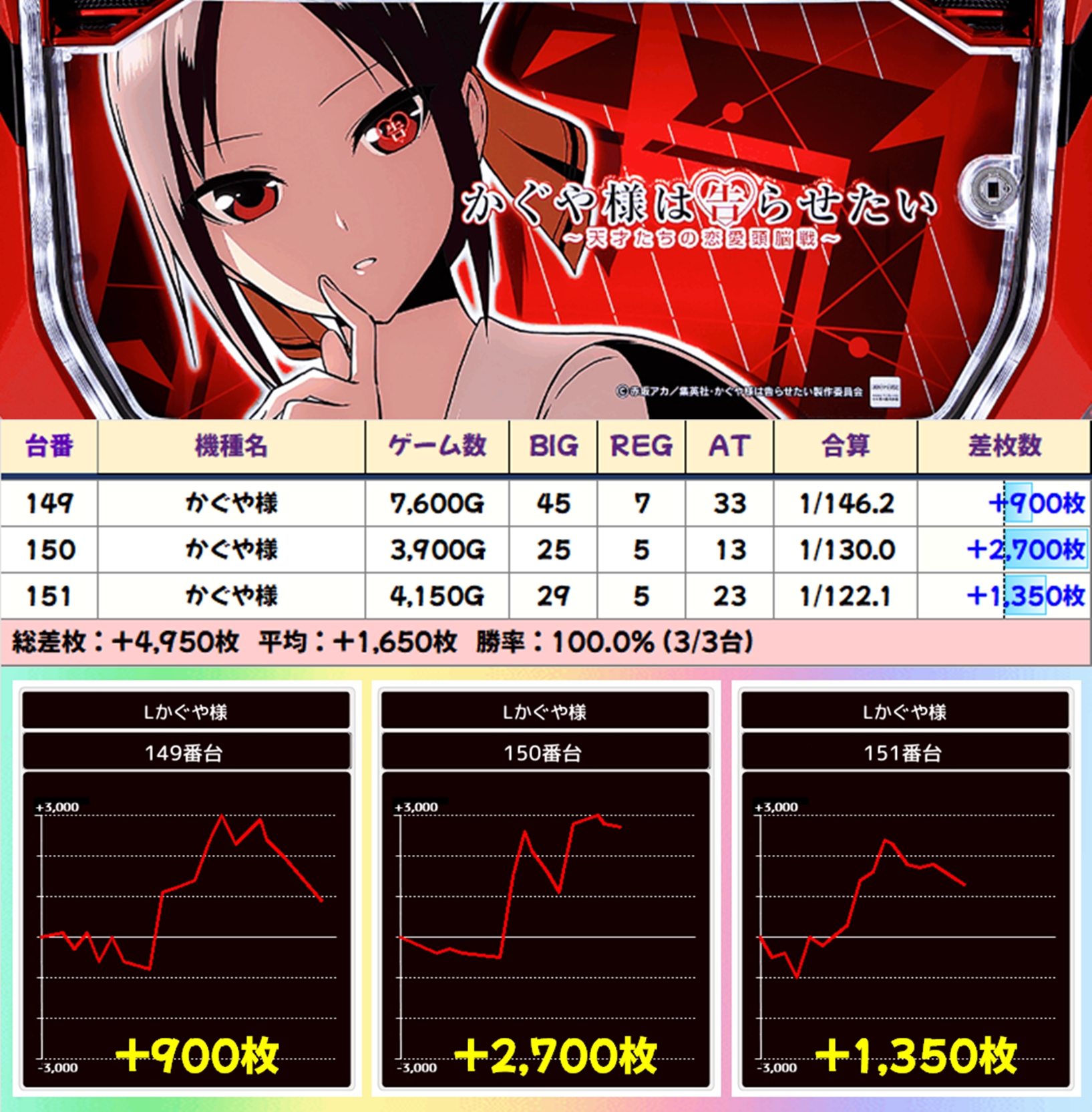 【3台並び】かぐや様(149-151番台)→平均+1,650枚