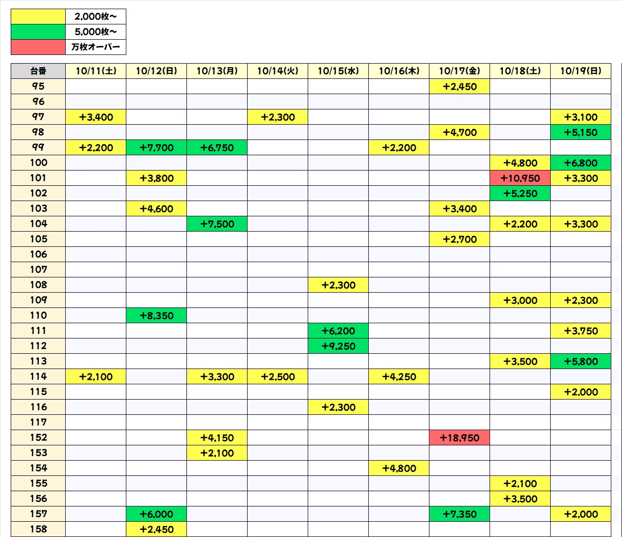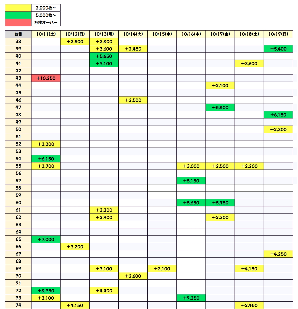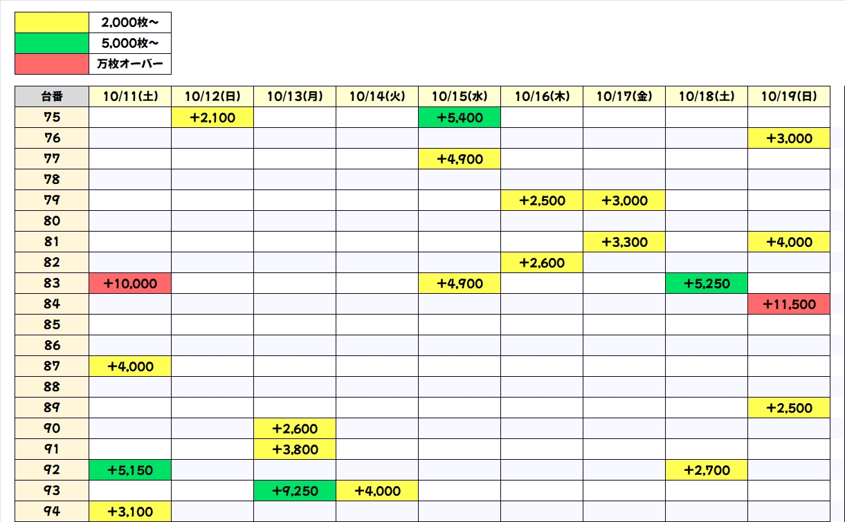 冒頭で紹介した通り、今回は総差枚+25万枚を超える好成績となり、万枚オーバーの爆発台は12台アリ!