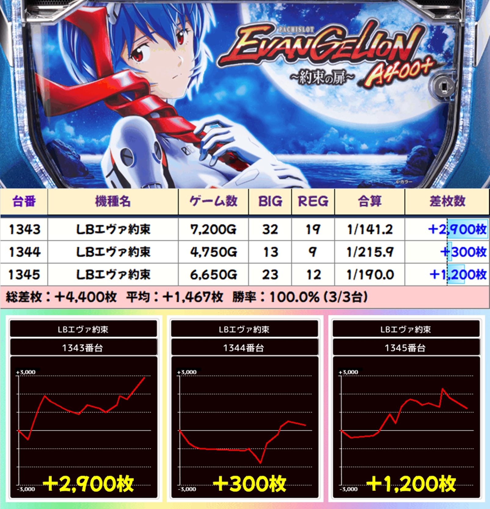 【3台並び】LBエヴァ約束(1343-1345番台)→平均+1,467枚
