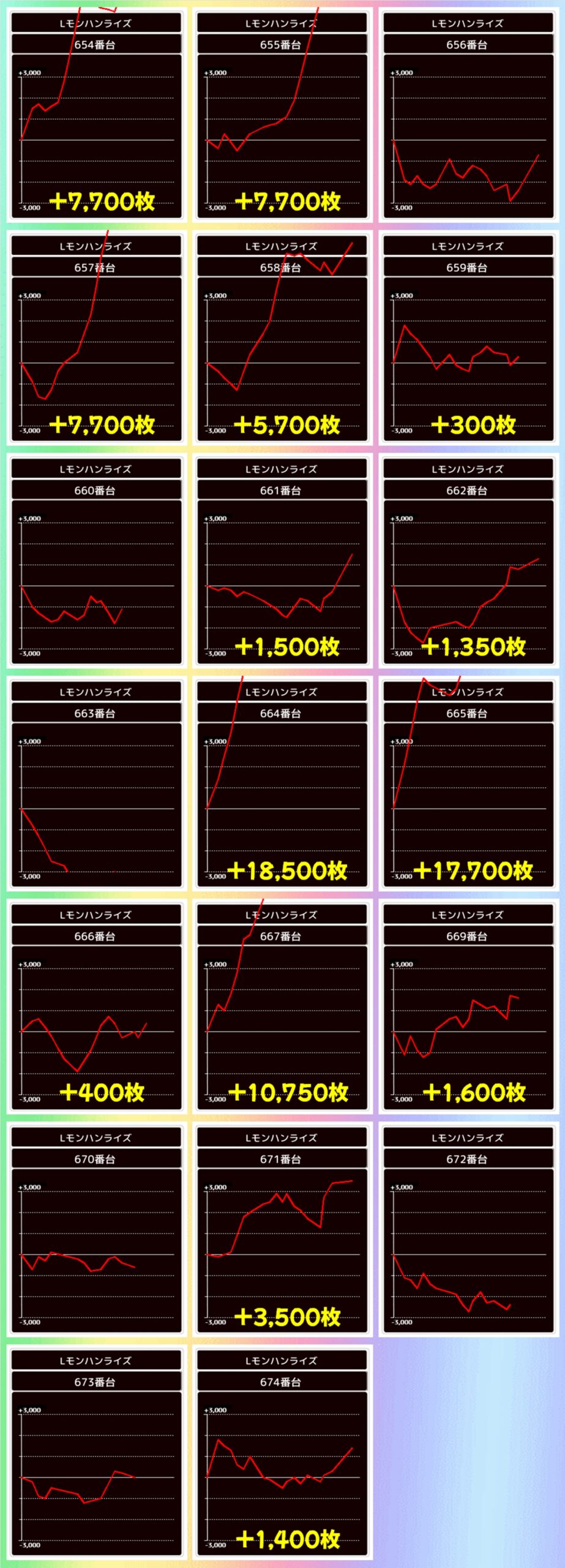 かぶぱポストにヒントがあったモンハンライズは、不発台があったものの+18500枚、+17700枚、+10750枚と万枚オーバーの爆裂が3台も出現。その他にも+7700枚など大量出玉を多数確認できました!