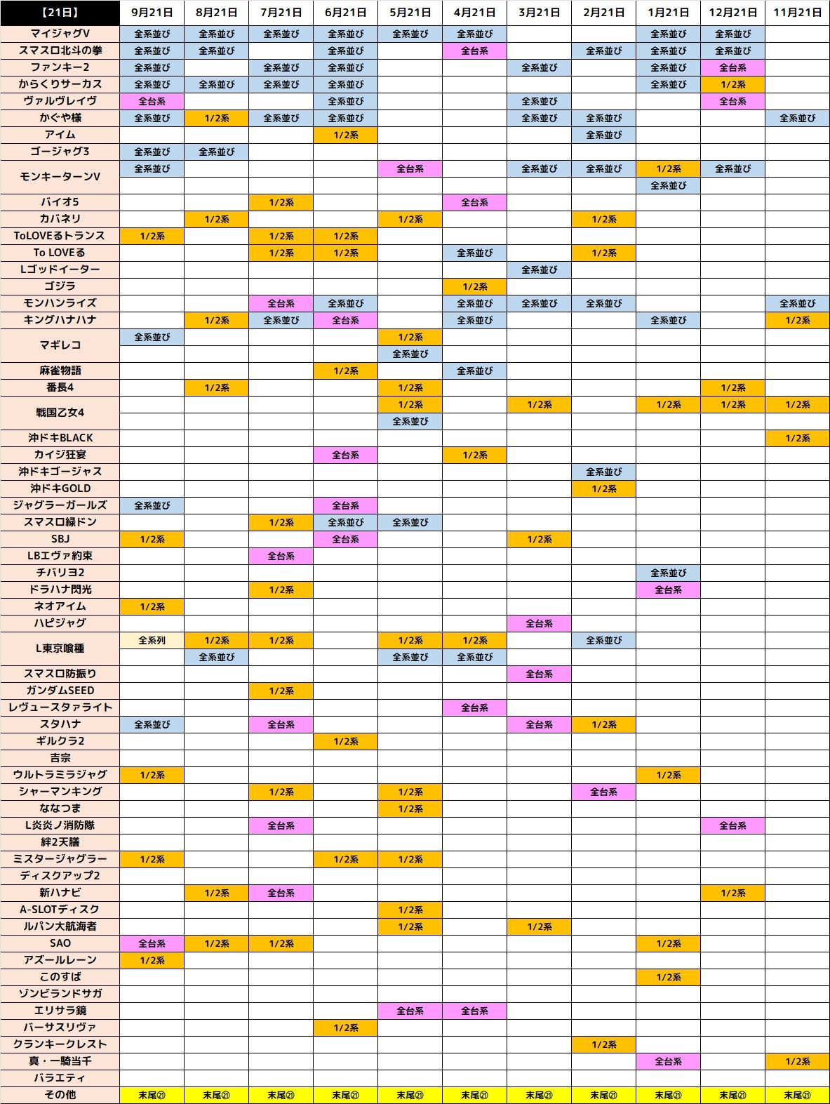 【末尾仕掛け】末尾㉑番台(8/9台+)➡平均+2,994枚