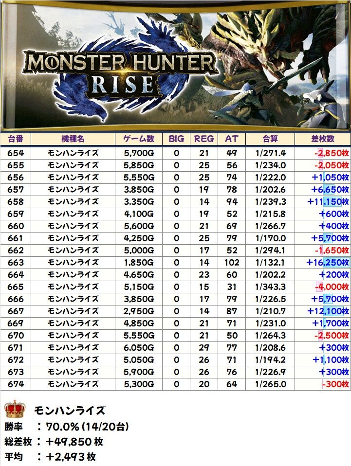 モンハンライズ(14/20台+)➡平均+2,493枚