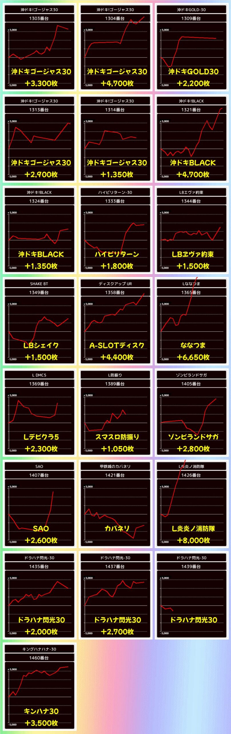 また、ローテフロアの4Fからは「沖ドキゴージャス」の1/2系濃厚も!+4700枚を筆頭に半数が+2500枚以上と抜群!