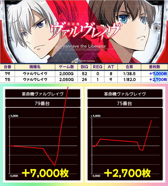 「ヴァルヴレイヴ」には+7000枚の爆裂台を確認!