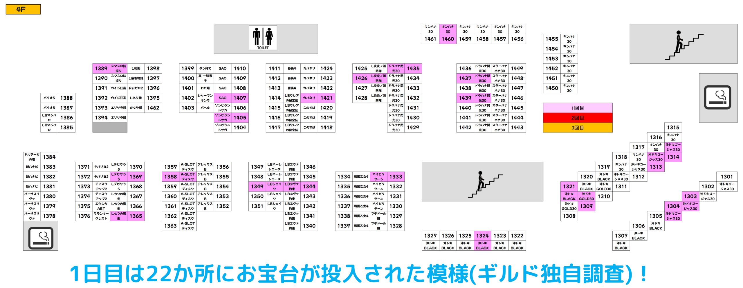 『激熱7days』の期間中は対象フロアにお宝台が大量投入されることが予想されますので、残りの期間中も積極的に4Fを攻めていきましょう!