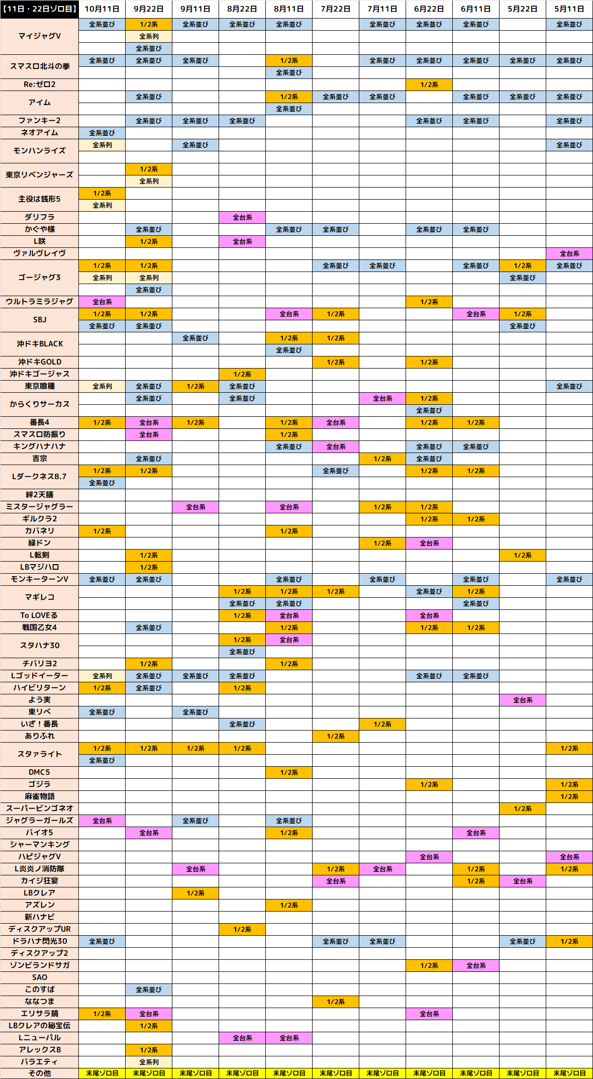 毎月21日~27日は日付け末尾の台番が強くなる傾向があり、22日のゾロ目の日はゾロ目末尾が狙い目となるのが恒例です。