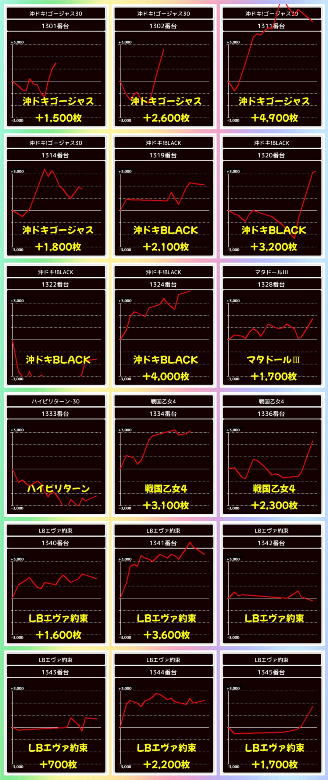 激熱7days期間中に対象フロアを狙っていけば、全台系や1/2系などの仕掛けに辿り着く可能性も高まるため、対象フロアはやはり超狙い目と言えそうですね!