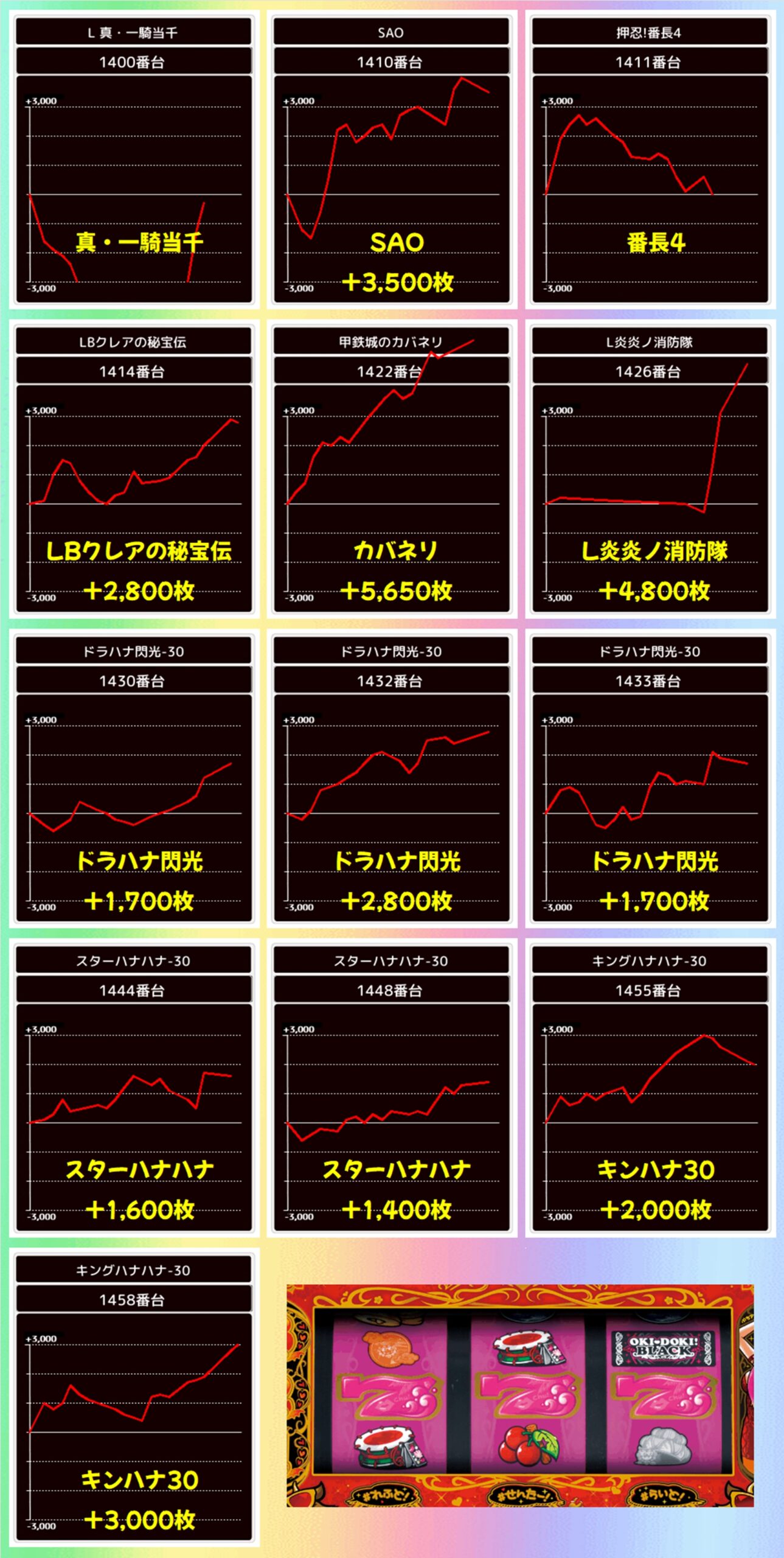 からくりサーカスからは+13650枚の万枚オーバーが炸裂! その他にも優秀台が多数アリ!