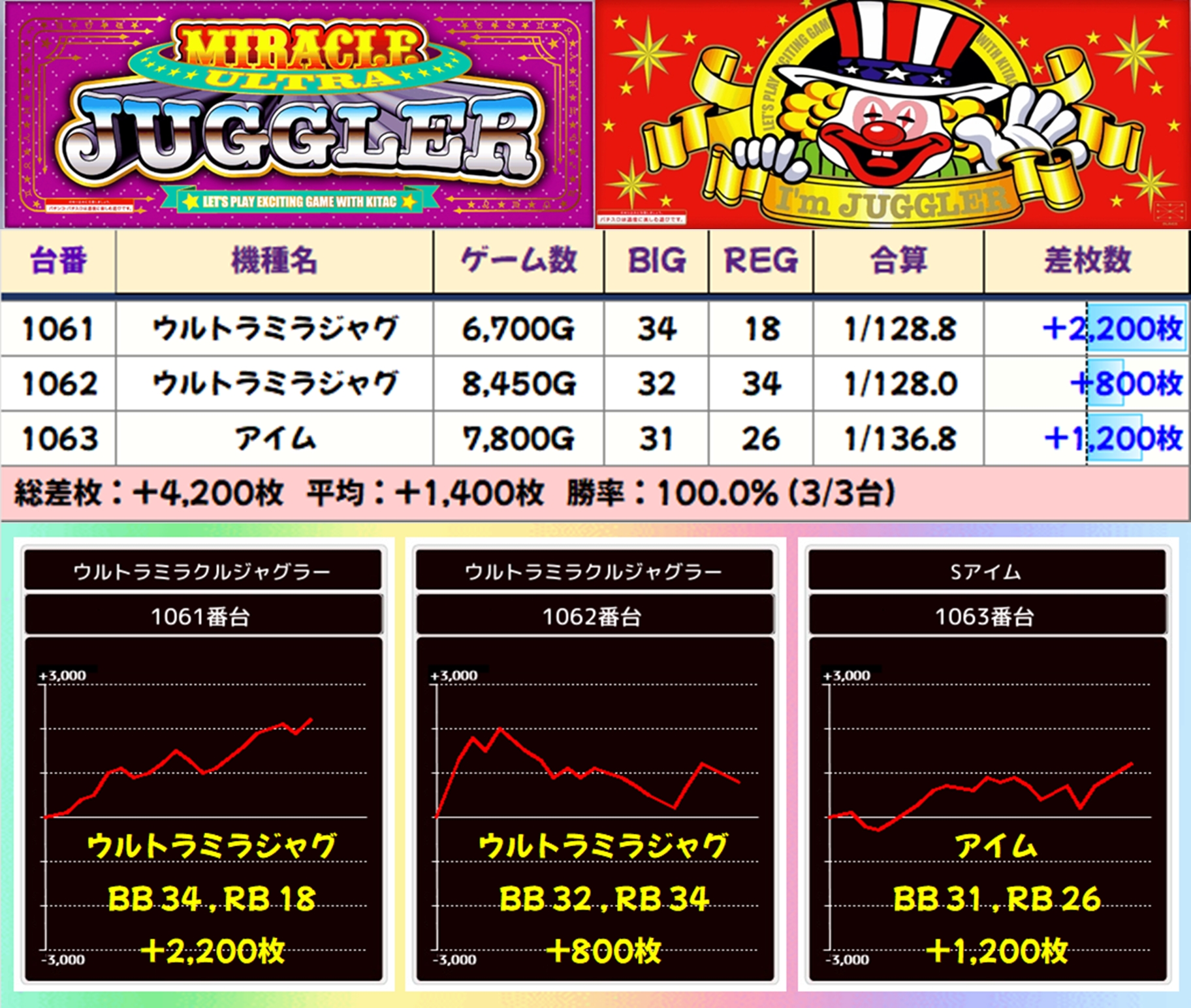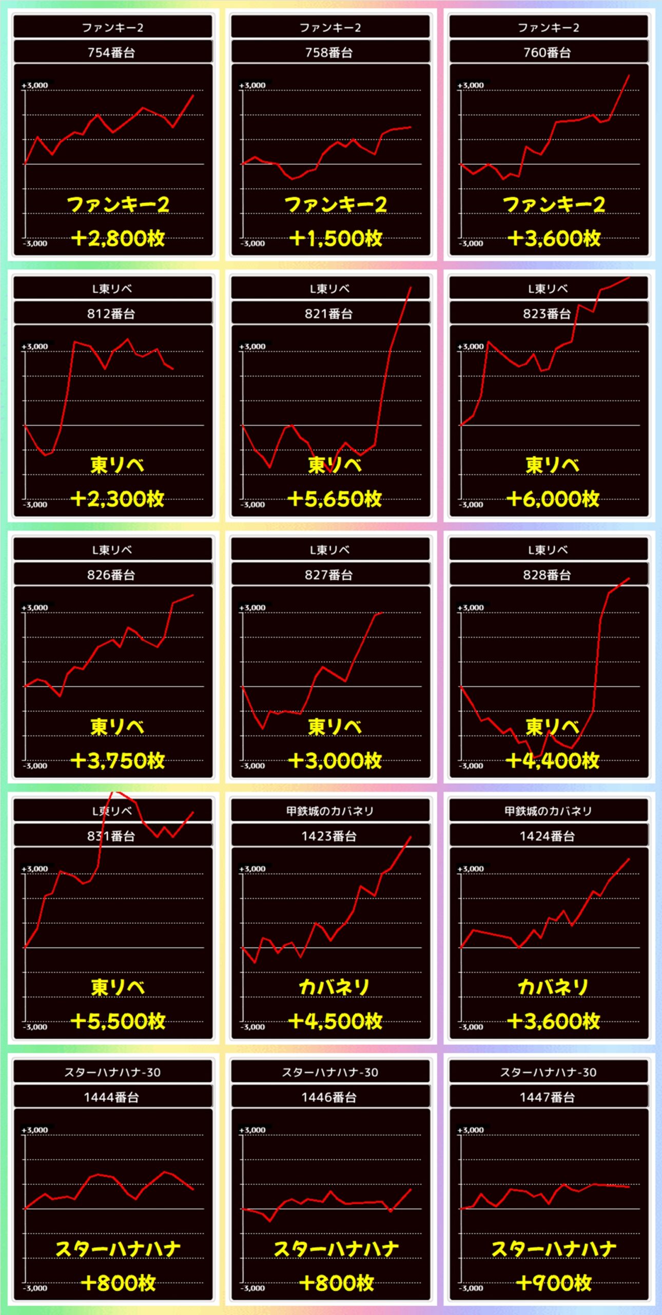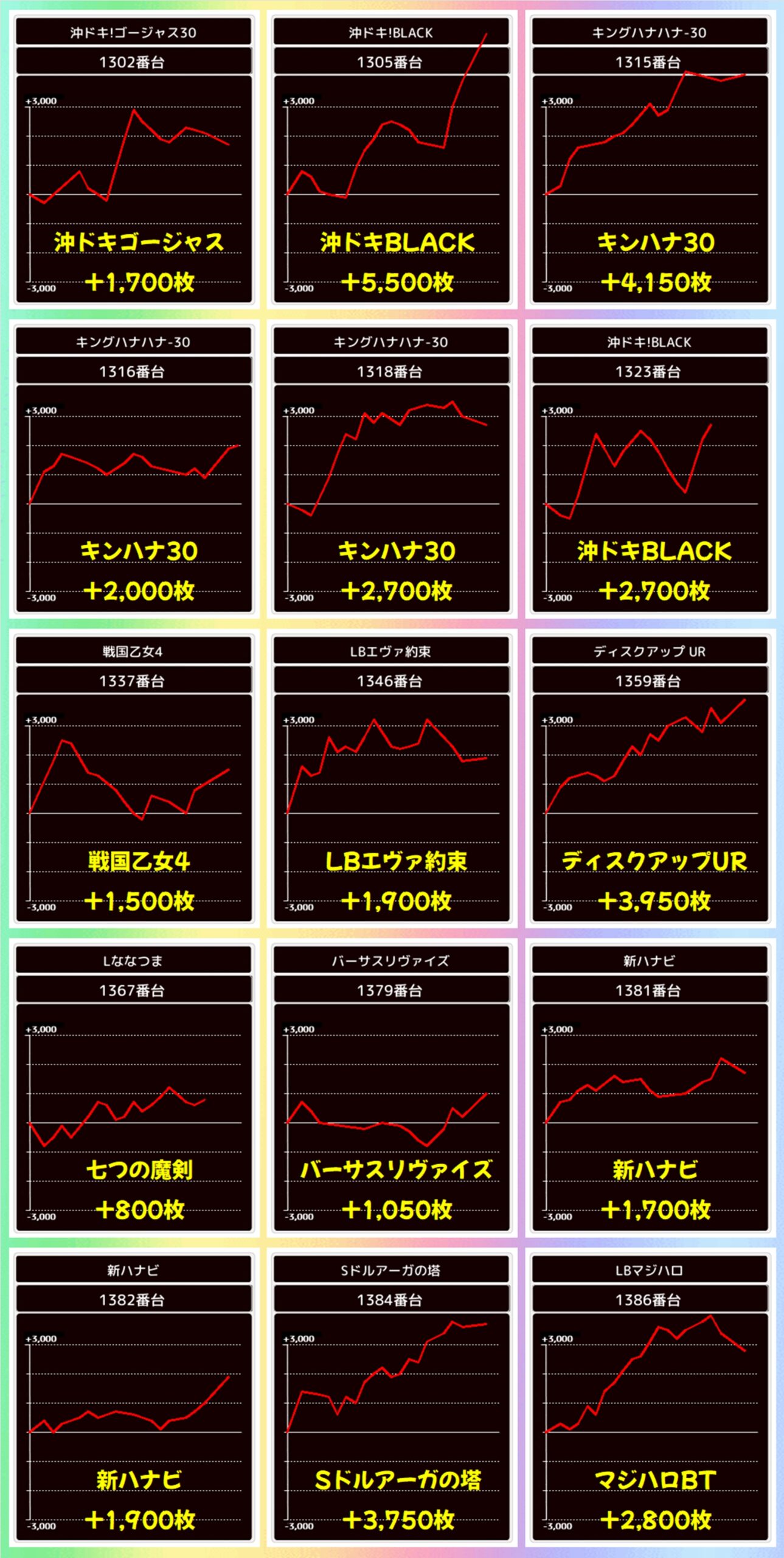 全台系濃厚の仕掛けは3機種から確認できましたが、全機種が好成績となりました!