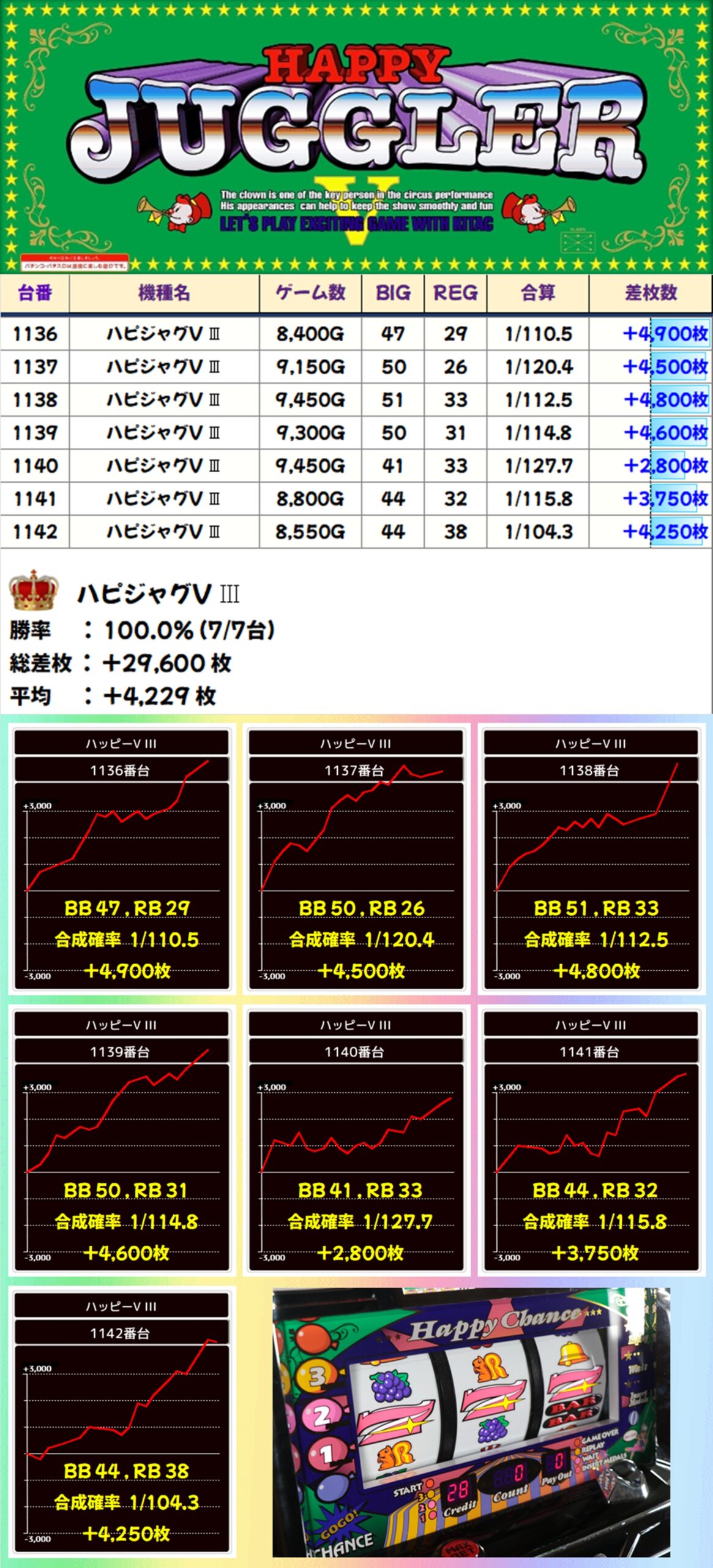 【全台系濃厚】ハピジャグV Ⅲ(7/7台+)→平均+4,229枚
