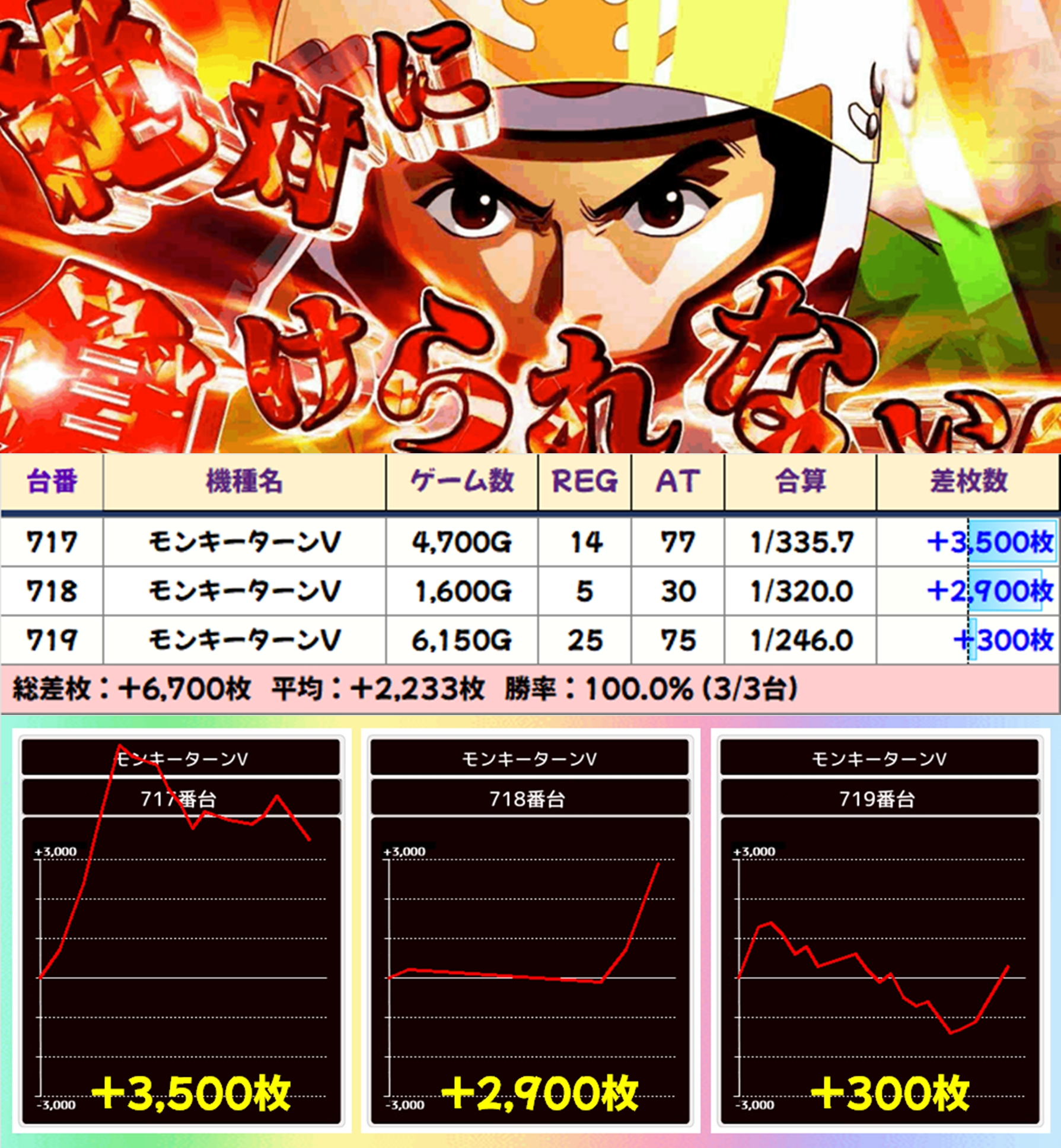 【3台並び】モンキーターンV(703-705番台)→平均+3,717枚