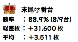 末尾㉓番台(8/9台+)→平均+3,511枚