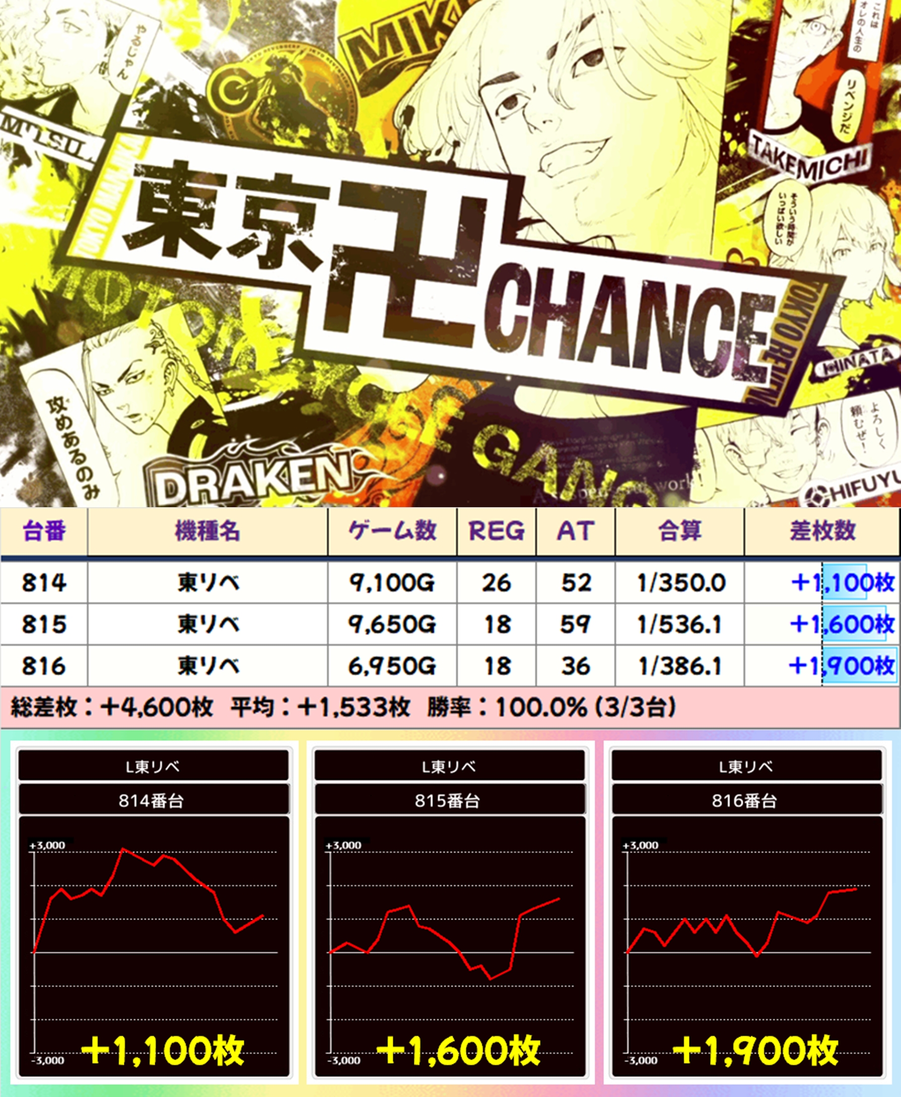 【3台並び】東リベ(814-816番台)→平均+1,533枚