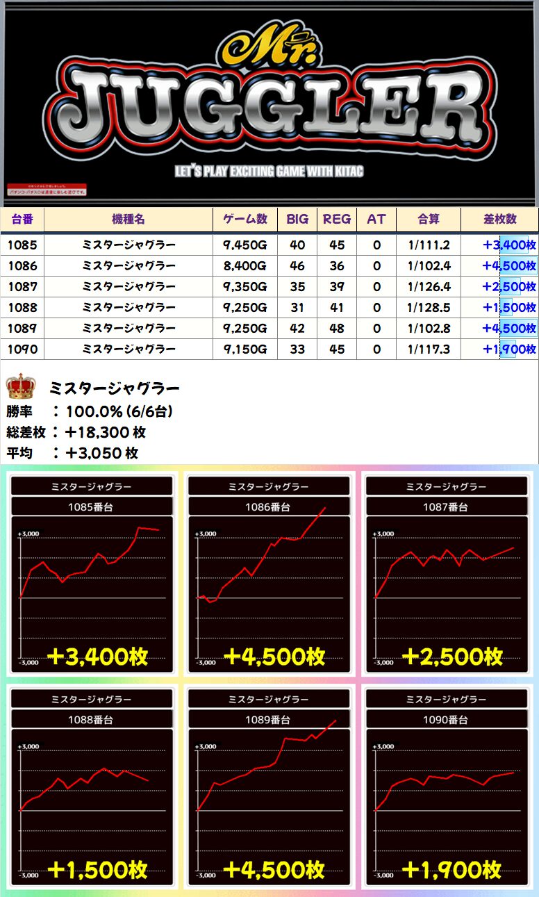 ミスタージャグラー (6/6台+) ➡平均 +3,050枚
