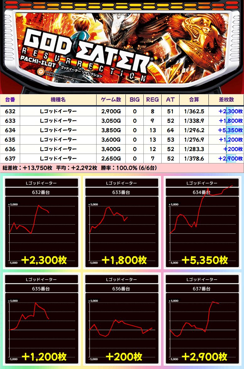 【列仕掛け】ゴッドイーター(632-637番台)→平均+2,292枚