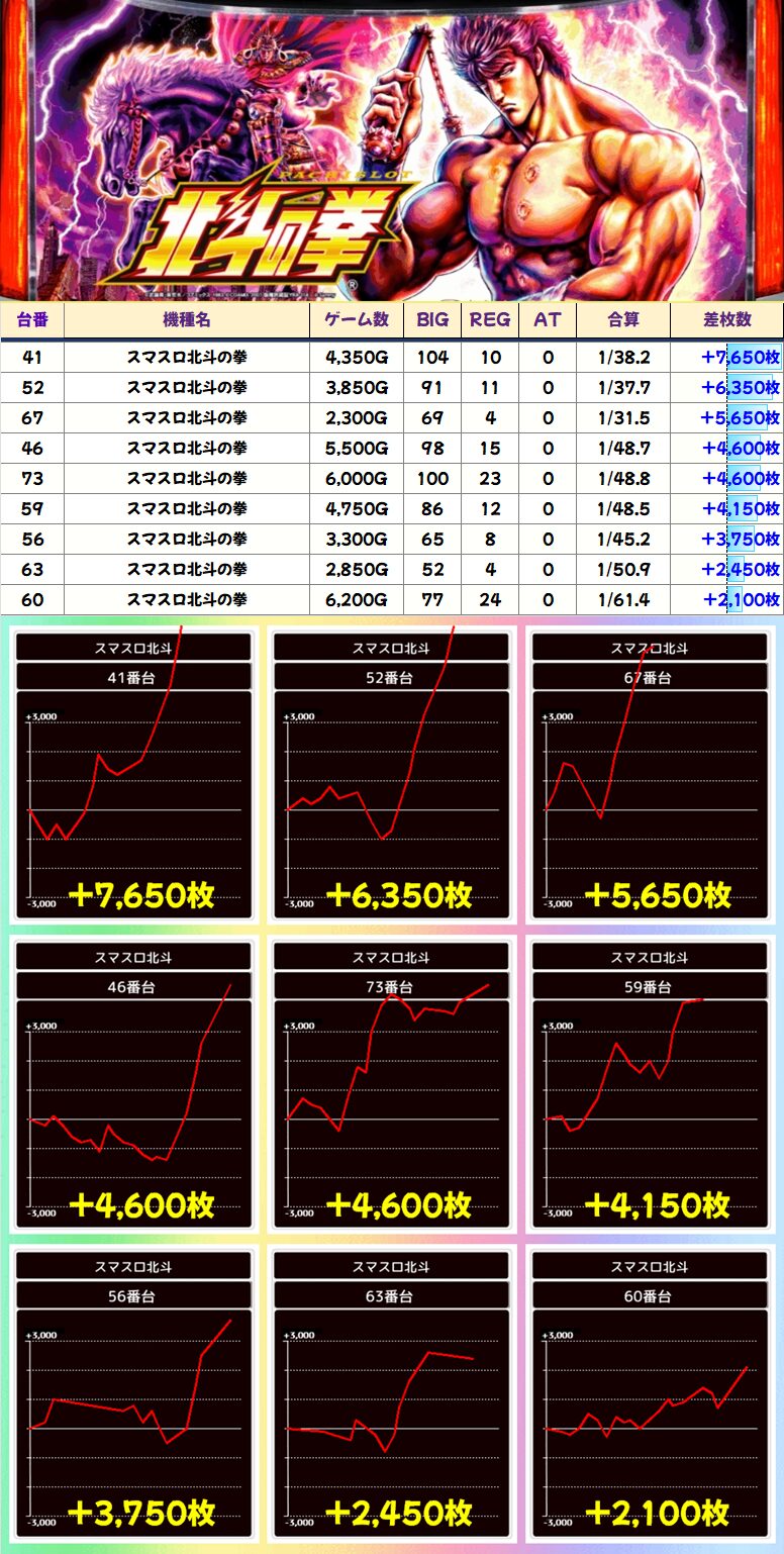 スマスロ北斗は7000枚を筆頭に優秀台が9台と大量!