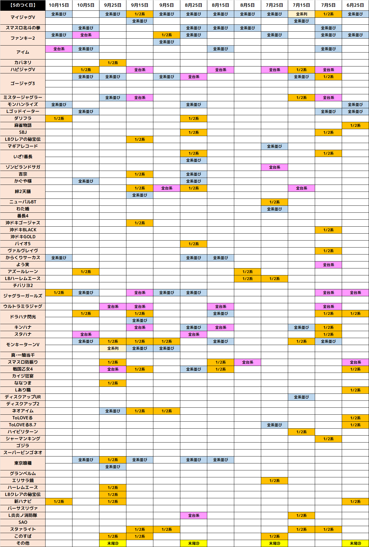 今回は下記9機種に1/2系濃厚の仕掛けがあった模様。