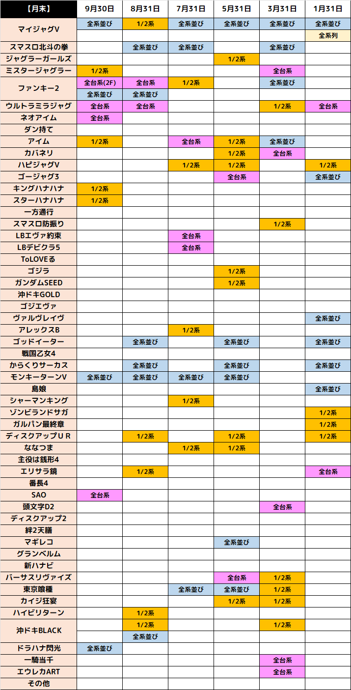 本日はジャグを中心に並び・列仕掛けがふんだんに用意!とくにゴージャグは列仕掛けが2本・並びが1本と高水準な結果に!31日はとにかくジャグを責めることをお勧めします!