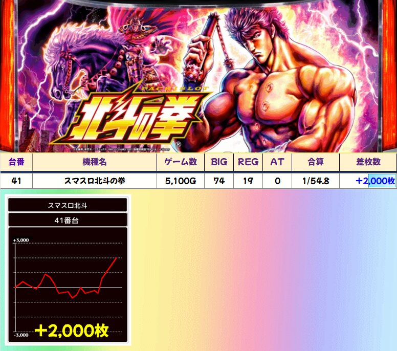 スマスロ北斗は2000枚以上の優秀台が1台と不発気味な結果に…。
