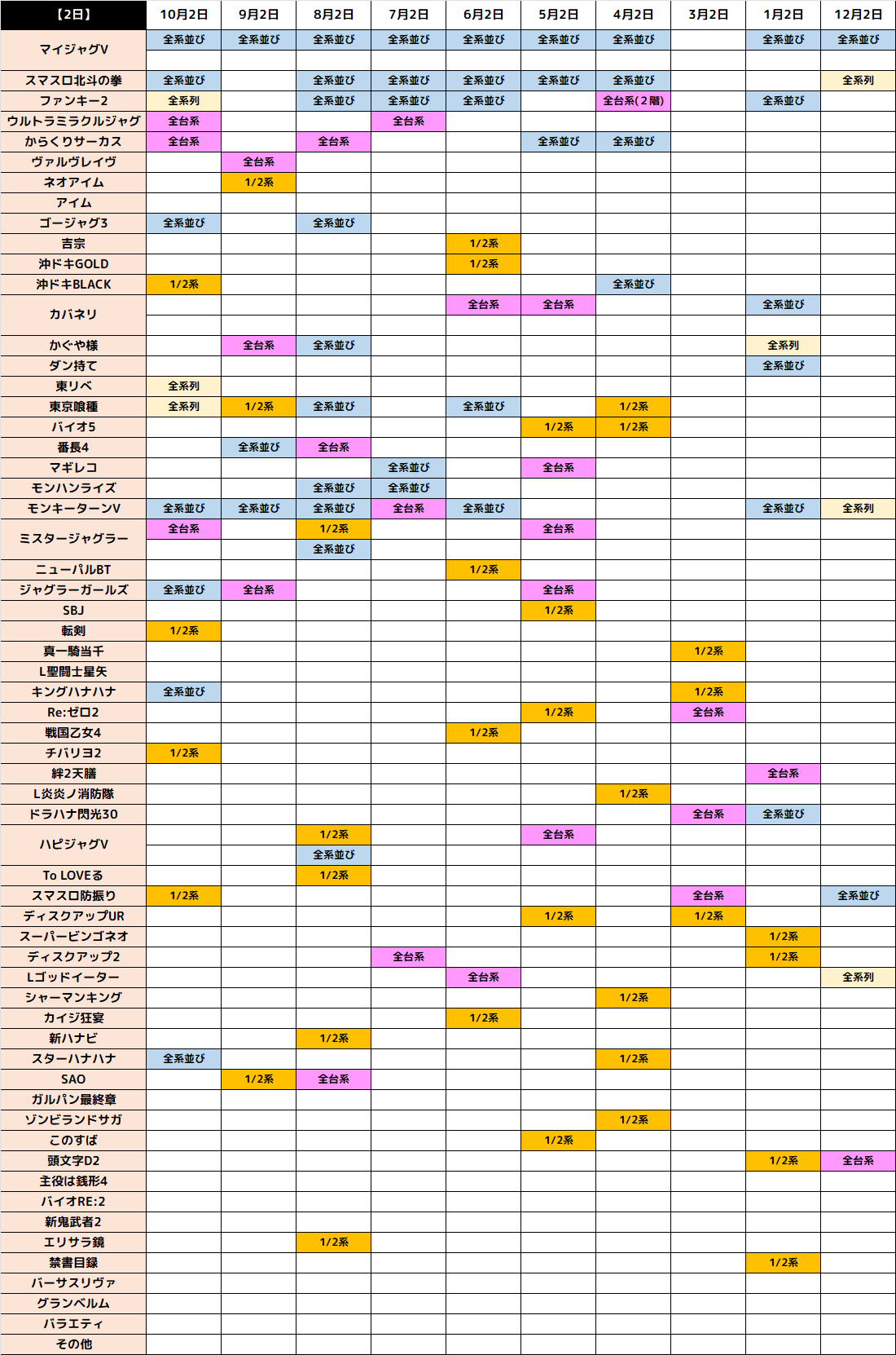 本日は全台系濃厚を複数確認できましたが、1/2系濃厚と思われる機種も多数確認することができました。