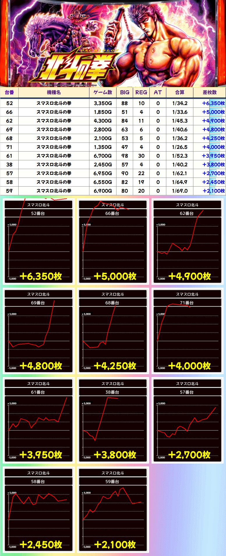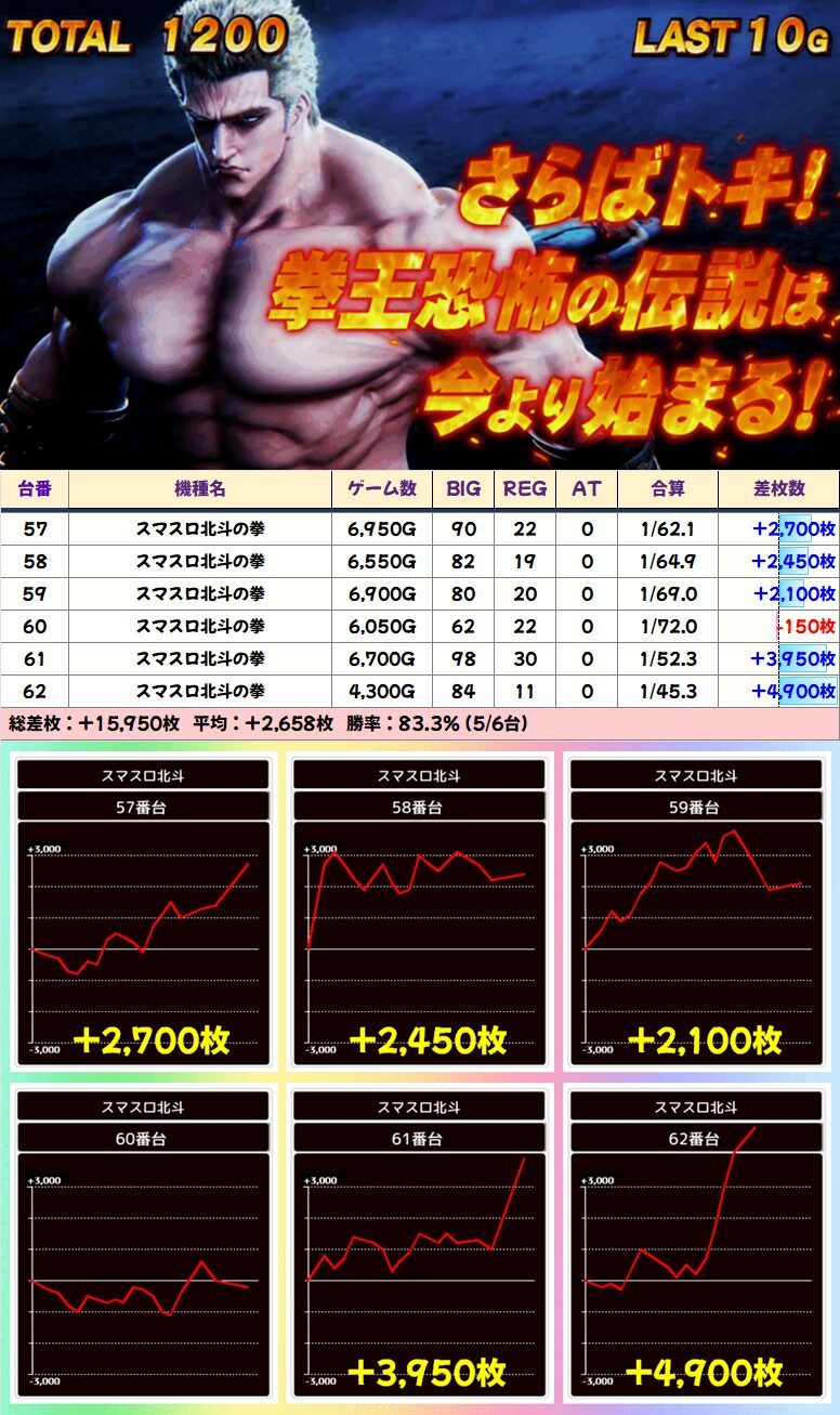 【6台並び】スマスロ北斗(57-62番台)➡平均 +2658枚
