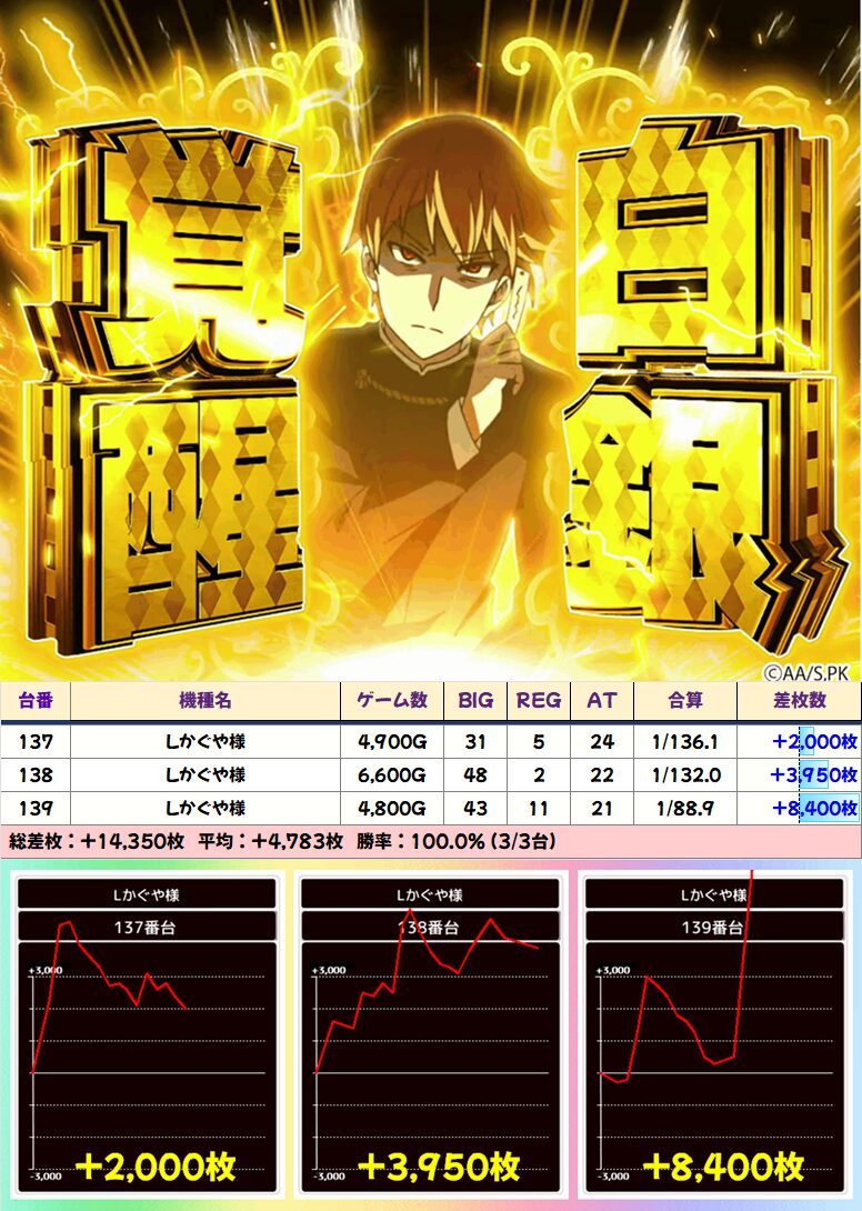 【3台並び】かぐや様(137-139番台)➡平均 +4783枚